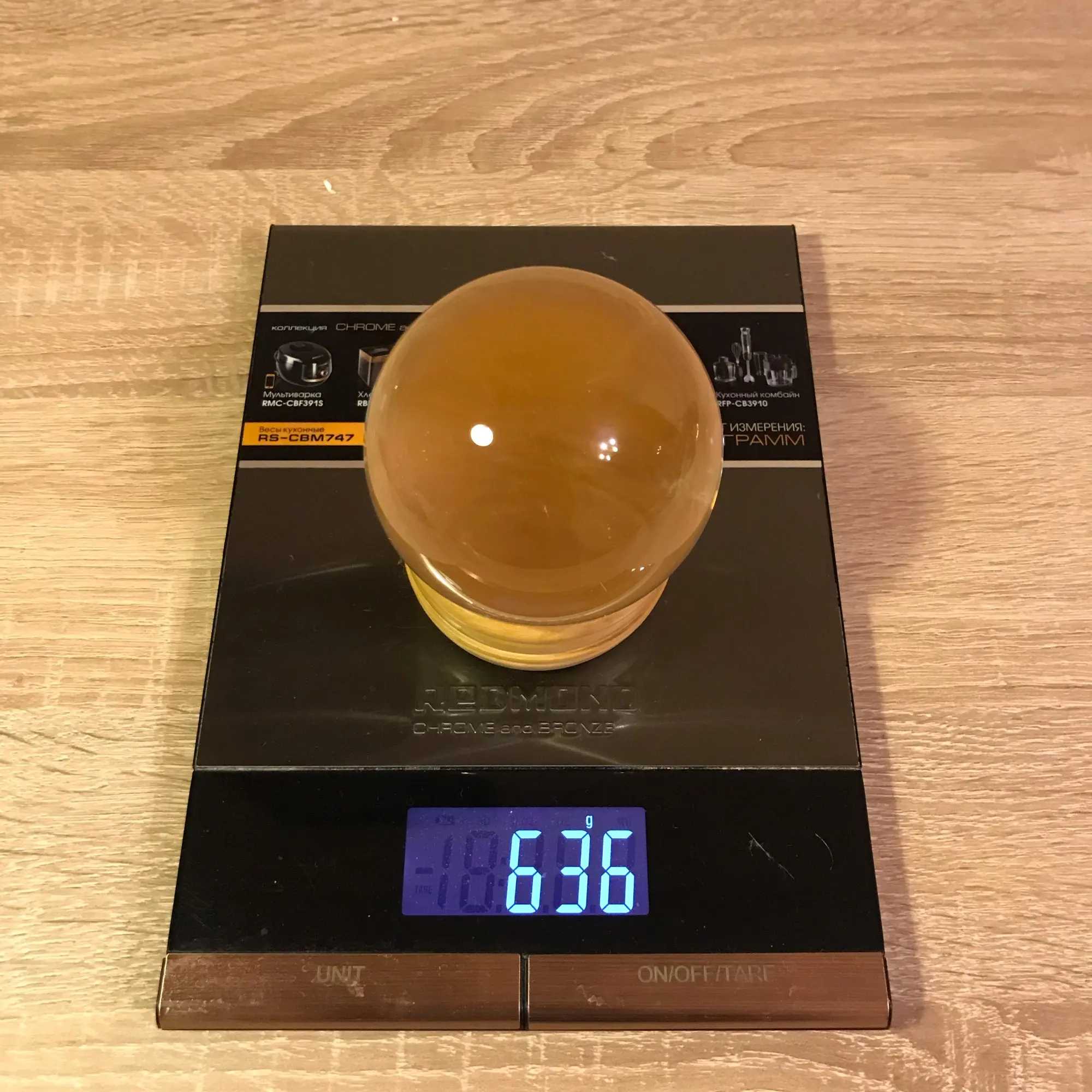 Доставка - 13 дней, курьером. Пришёл в целости и сохранности. Упакован хорошо: в картонную коробку, верх-низ - пенопласт. Вес шара диаметром 80 мм - 636 грамм. Чуть ранее заказывала прозрачный шар диаметром 120 мм, его вес - 2 кг 175 гр. Доставка была из России. Пришёл за 12 дней в ячейку Пастамата.