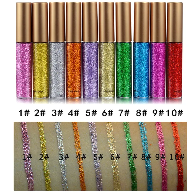 Тени для век, 10 цветов, белые и золотые блестящие тени для век, водостойкая жидкая подводка для глаз, подводка для макияжа