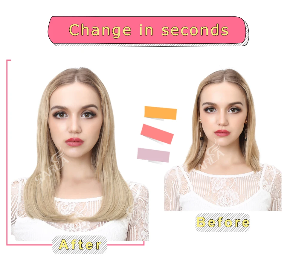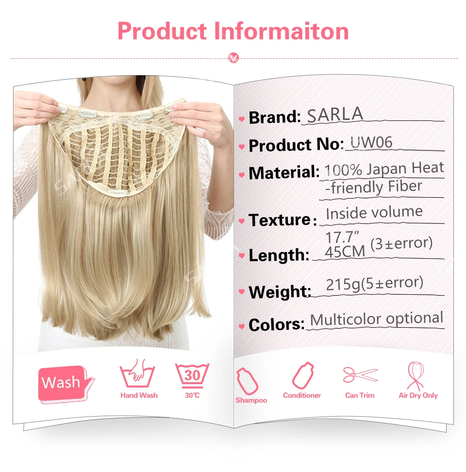 SARLA синтетический полупарик с U-образным зажимом для наращивания волос для женщин, искусственный короткий прямой женский парик, 18 дюймов, натуральные шиньоны 06
