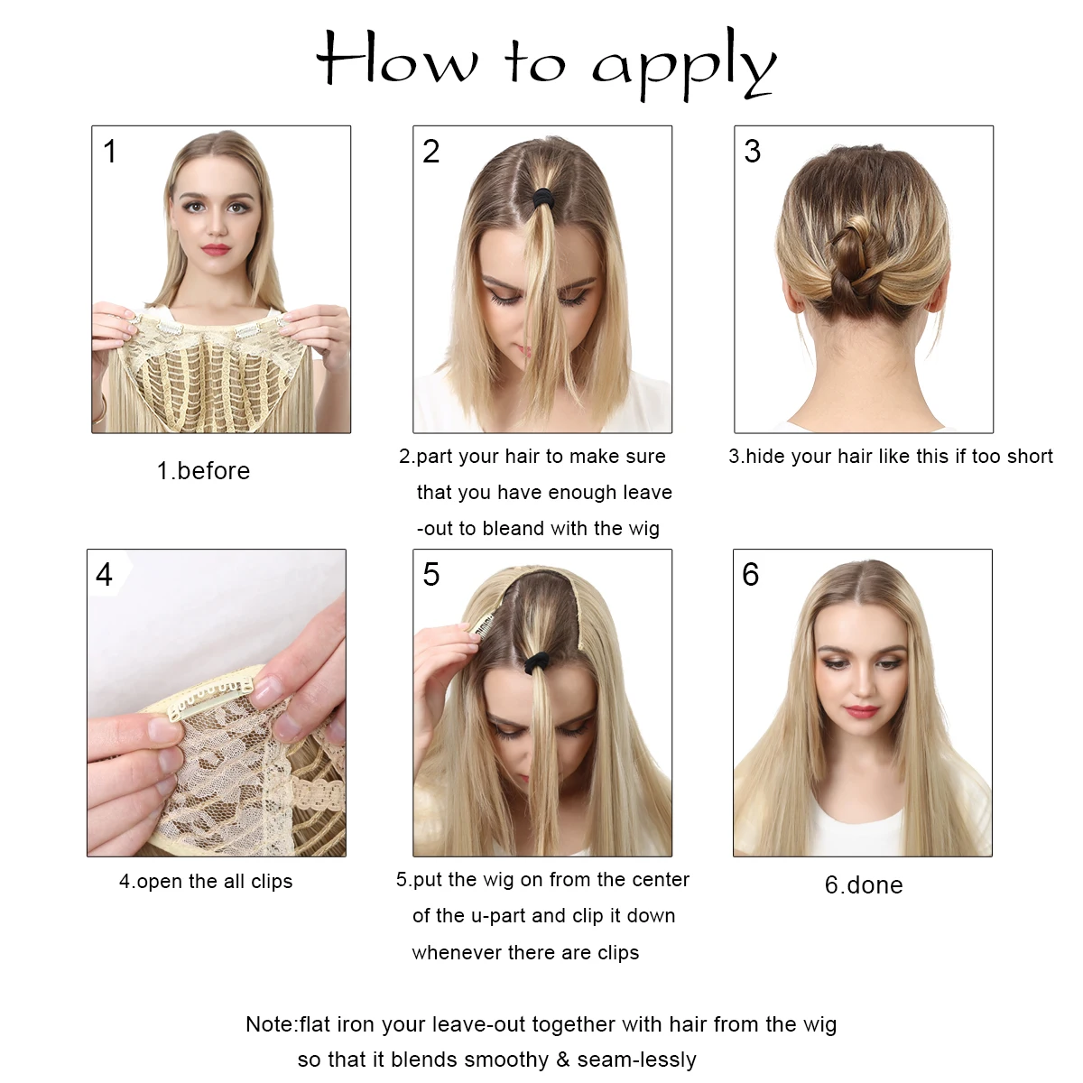 U-образный полупарик блонд Омбре, длинные прямые головы, дешевые си...