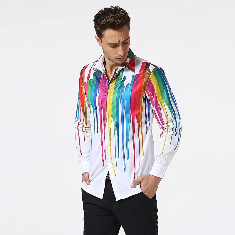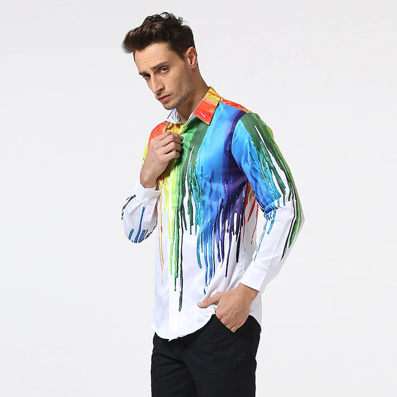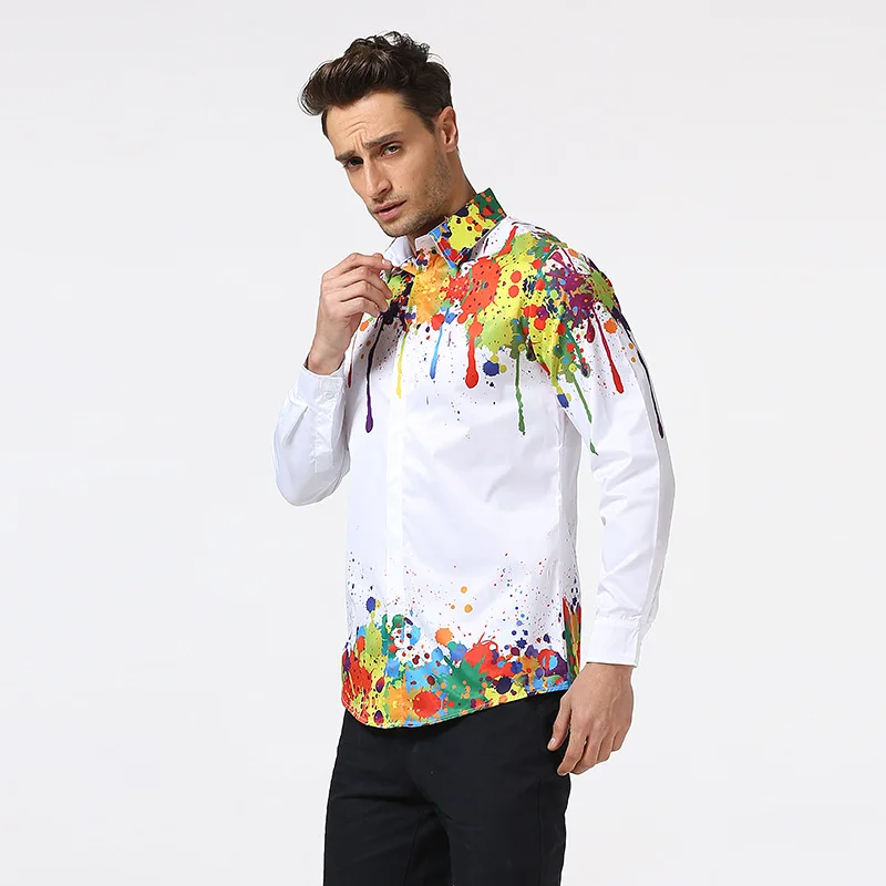 Лидер продаж, высококачественные Модные приталенные мужские рубашки с 3D принтом брызг краски, роскошные повседневные рубашки с длинным рукавом, топ M-3XL