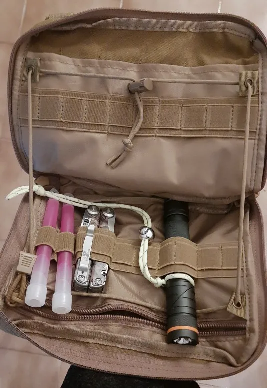 Я купил две эти сумки, в основном, чтобы использовать их для аптечек и автомобильных утилит. Песочный цвет-лучший выбор для быстрого хранения предметов, черный-плохой выбор. Внутреннее пространство хорошее, в нем могут храниться большие предметы, такие как фонарики или бутылочки, я беспокоился о недостаточной боковой ширине, но это хорошо (на 1 см больше может быть еще лучше). Внутренние эластичные ремни могут держать как маленькие, так и большие товары, идеально. Боковые внешние компрессионные ремни можно сложить внутри женской Молле для более быстрого доступа к основному корпусу только с молниями. Они получат красный крест. Мужские крепления можно снять, а плечевой ремень хороший, отличный. В целом эти сумки до сих пор являются лучшими в своем классе. 100% рекомендуется. Продолжайте производить их всего на 1 см больше в ширину и никаких других изменений