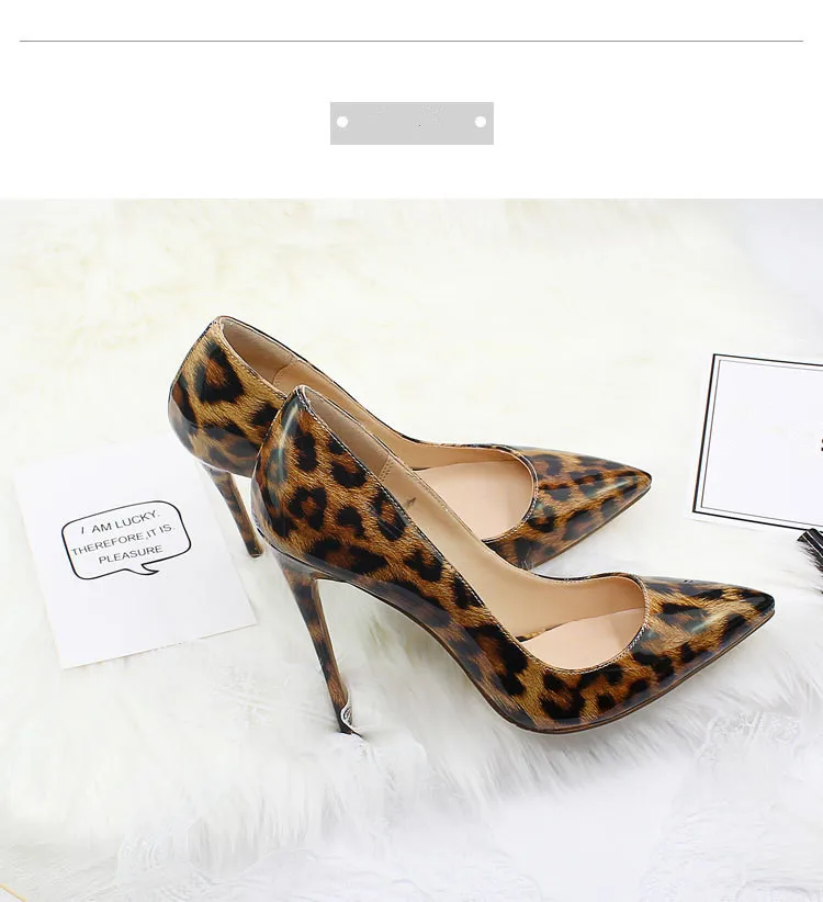 Пикантные женские туфли из натуральной кожи на высоком каблуке с леопардовым принтом; Офисные женские модельные туфли-лодочки с острым носком; Большие размеры
