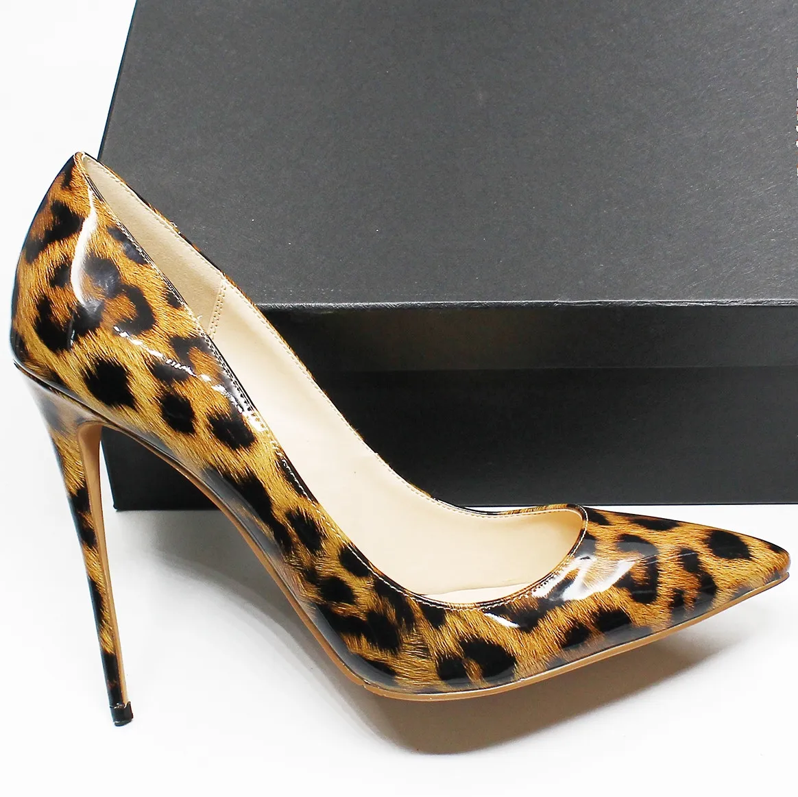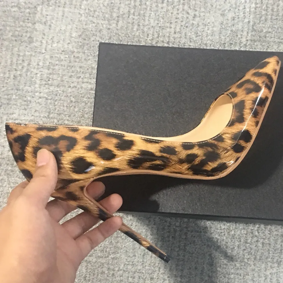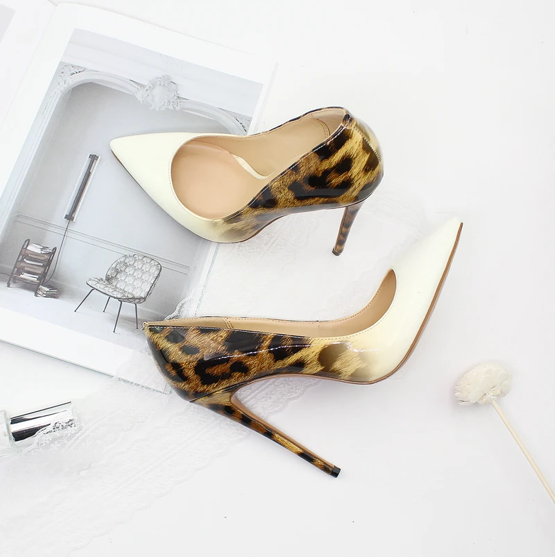 Леопардовая стильная женская пикантная обувь для торжеств; Туфли-лодочки с острым носком в простом стиле; Туфли на высоком каблуке 12 см с леопардовым принтом