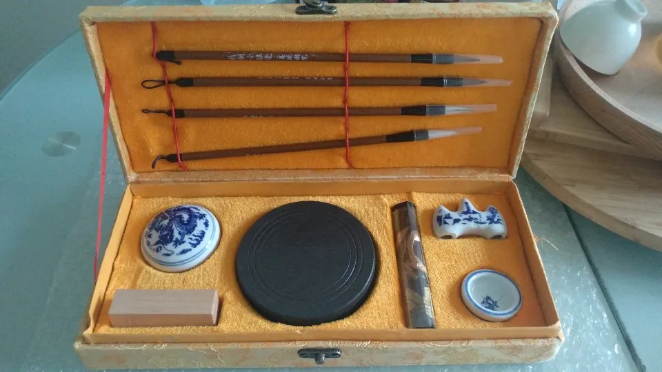 В комплект входят 4 кисти для письма, 1 мойка для письма, 1 чернильный карандаш, 1 уплотнитель, 1 чернильный коврик, 1 чернильный камень, 1 держатель кисти, всего 10 шт.