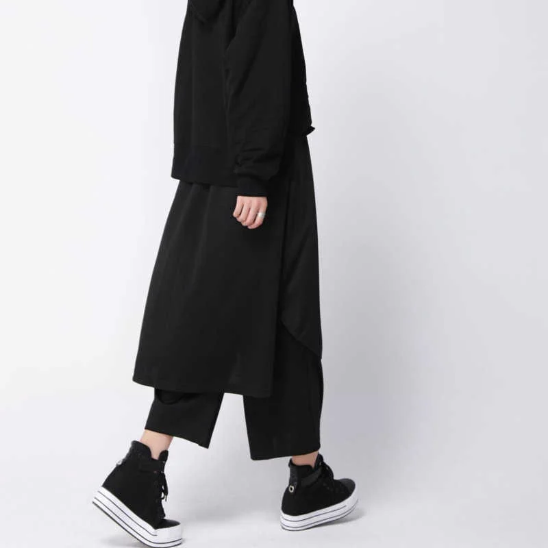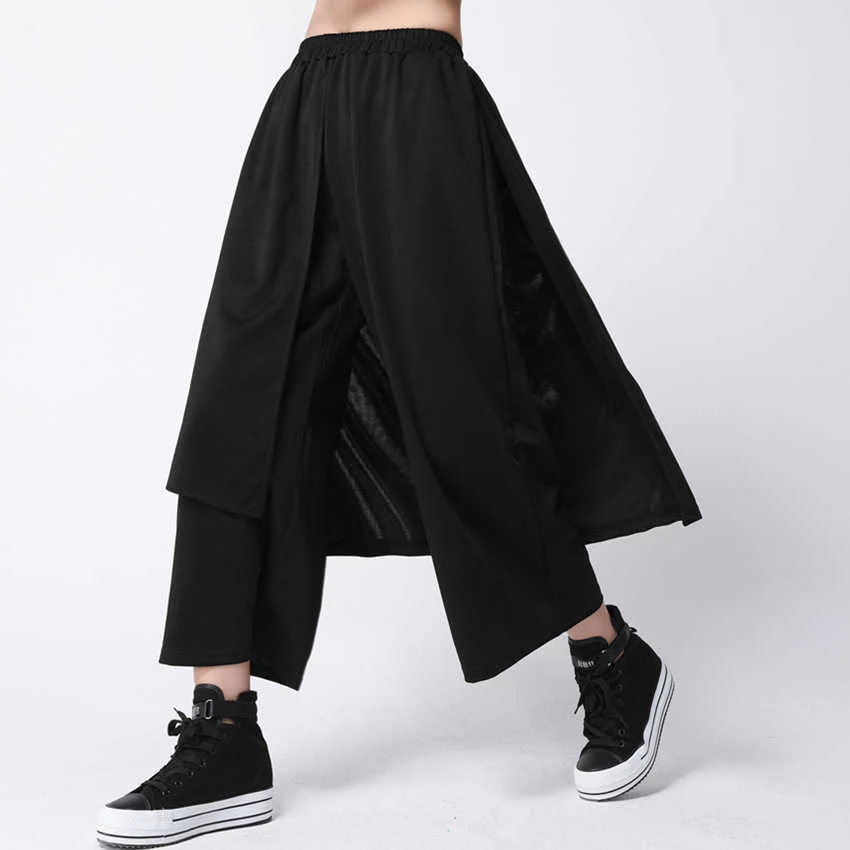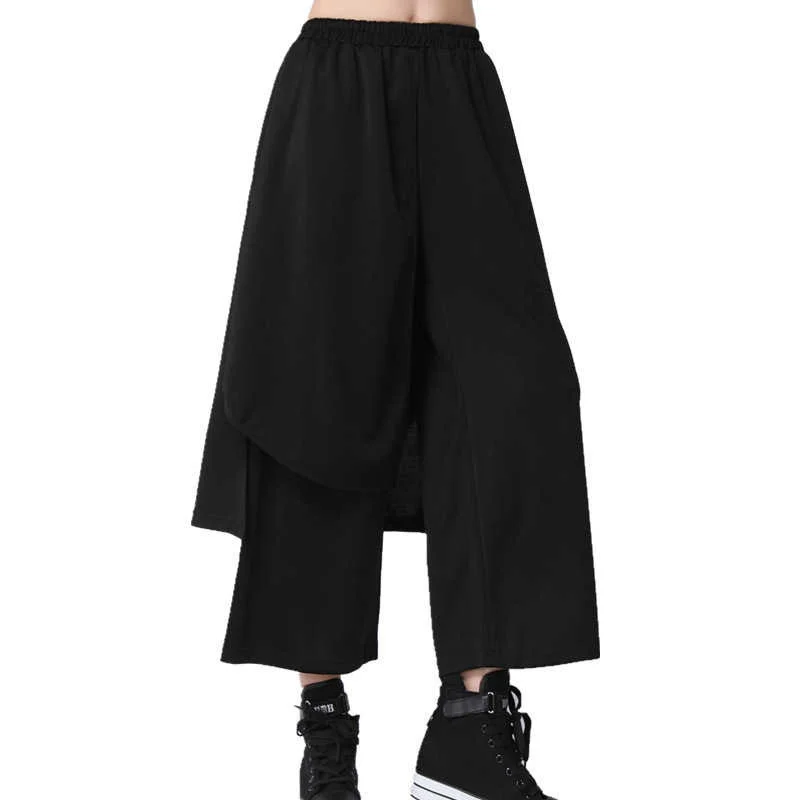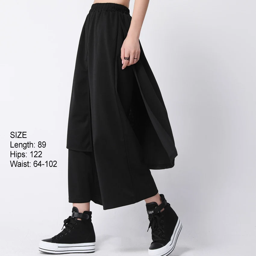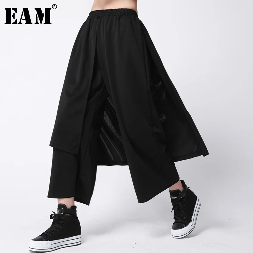 EAM Новинка 2022 года; Сезон весна; Свободные женские брюки с высокой талией на плоской подошве; Модные широкие брюки до щиколотки с эластичной резинкой на талии; OA866