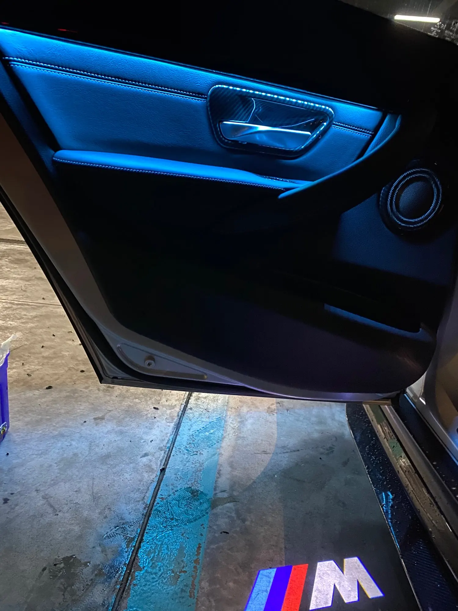 Декоративные светодиодные фонари для BMW 3 серии F30 12-18, четыре внутренняя панель двери, синего и оранжевого цветов