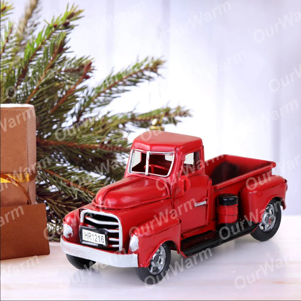OurWarm красный металлический автомобиль, старинный автомобиль, Винтажный Классический грузовик для дома, миниатюрное украшение для рождественской вечеринки, подарок на Новый год