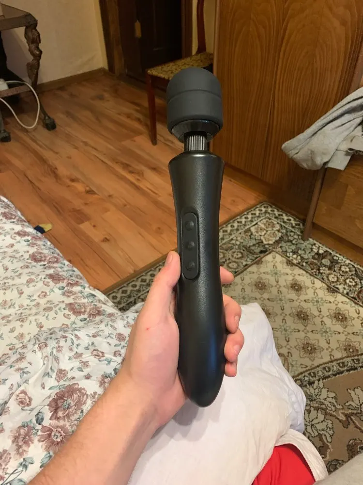 Настолько большой массажёр, что он лёг рядом с рабочим местом, и если вдруг нужен массаж шеи, плеч или рук, спины - он шикарно с этим справляется.. Как игрушка для секса не используется, потому что ну очень мощный