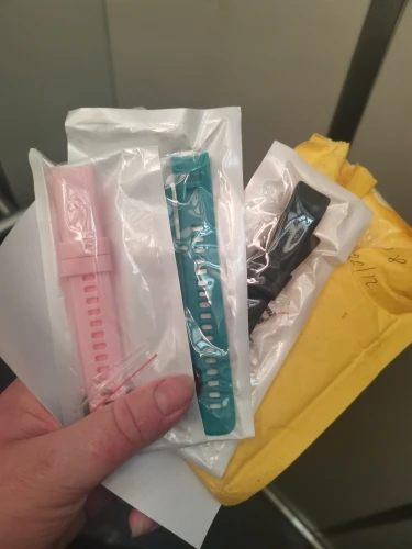Быстрая доставка: до Челябинска за 8 дней. Хорошие фиксаторы (раньше уже брал неоригинальные браслеты - есть с чем сравнить). Силикон жёстче, чем на других. Краска на застёжке стирается...