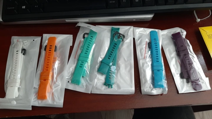 Товар шел меньше месяца. Отслеживался только до России. Заказывала зеленый и сиреневый. Зеленый светлее чем на картинке. Ремешки тверже чем оригинал но мне понравились. К Honor Band 5 прекрасно подошли. Спасибо продавцу.