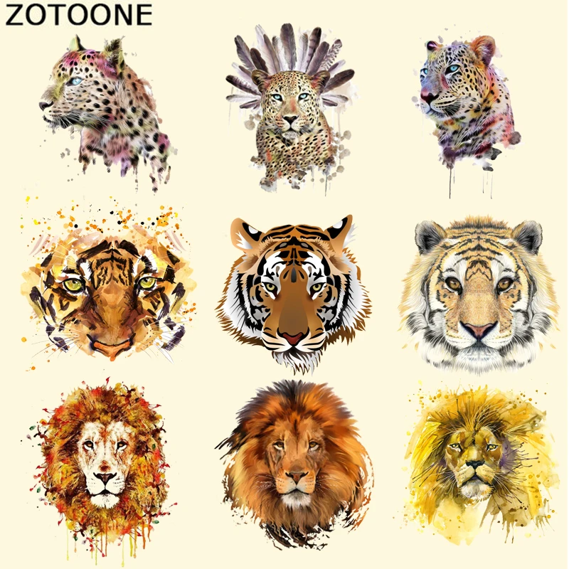 ZOTOONE со львом для переноса утюгом нашивки в виде животных для одежды с аппликацией в виде передачи тепла леопардовые моющиеся полосатые наклейки "сделай сам"
