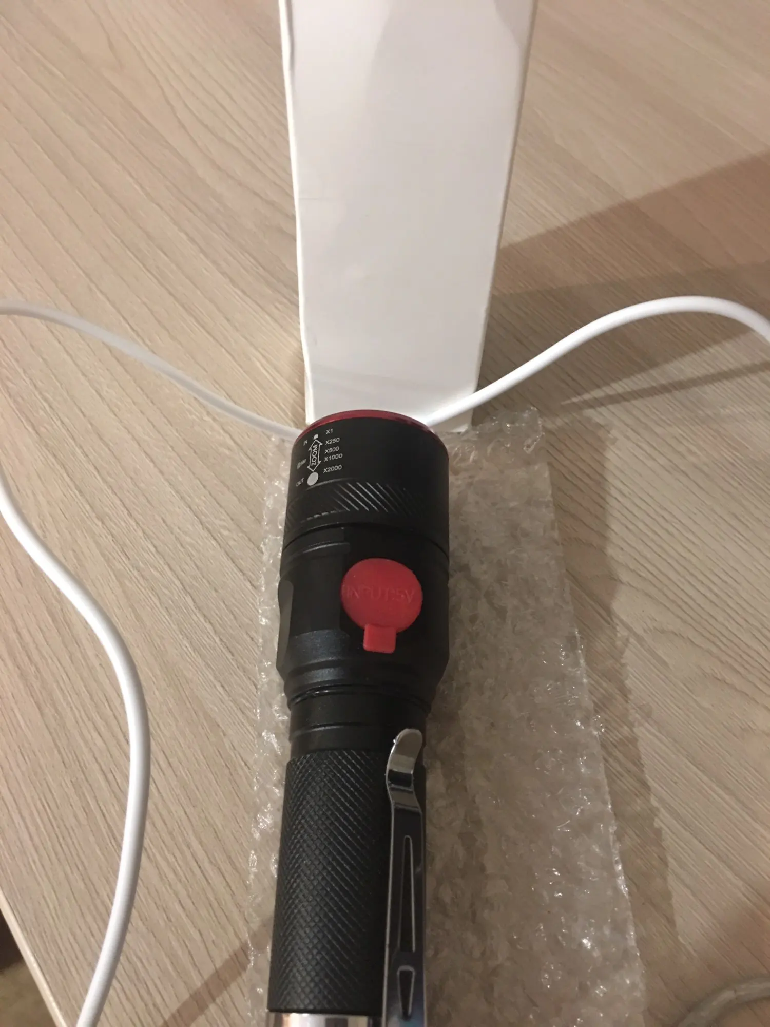 Фонарик не плох (за такие деньги), упаковка пакет с пупыркой. Доставка до Ярославля 15 дней.