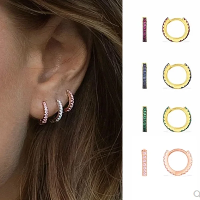 Маленькие серьги-кольца CZ, бирюзовая серьга в стиле минимализм для...