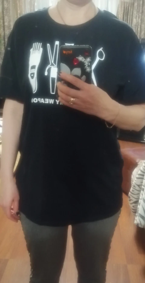 Взяла L размер,но она большая и длинная,будто не женская,а мужская( в остальном качество и доставка норм
