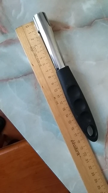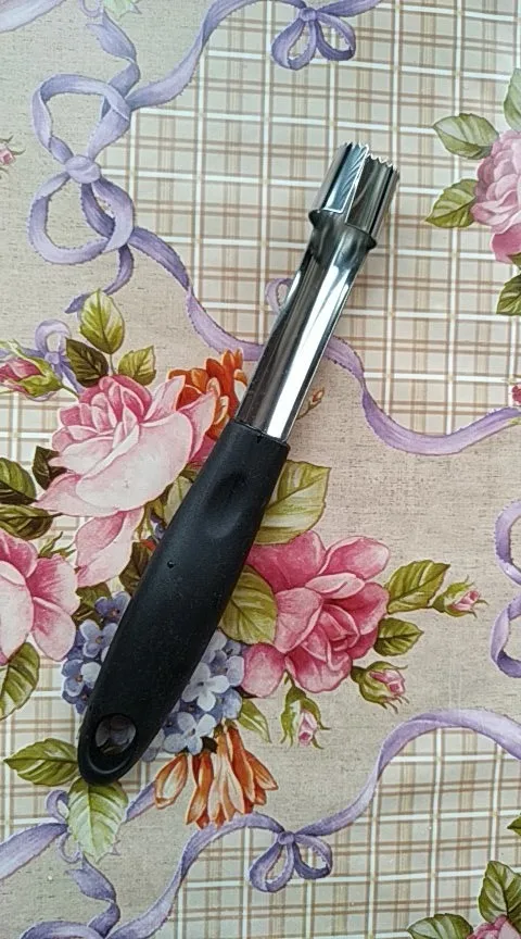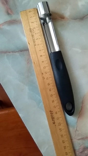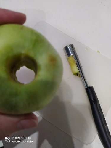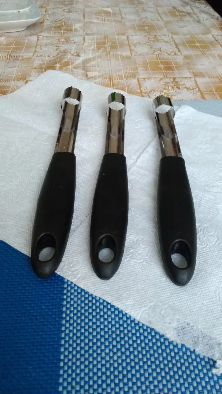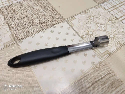 Товар пришел очень быстро. Сразу помыли и использовать не получилось, потому что нож выскочил из ручки, совсем не закреплен. Меня это не расстроило, приклеили, и теперь пользуемся с удовольствием. Быстро и удобно вычищать сердцевину.