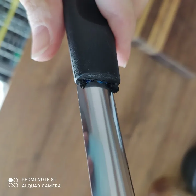 Металл не тонкий, удобно пользоваться. Ручка из приятного на ощупь пластика. Не выглядит дешёвым.