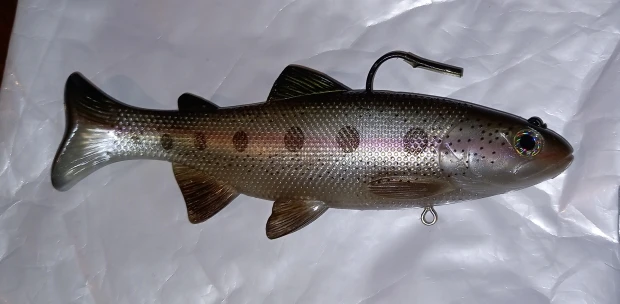 Приманка имеет качество, хвост движется хорошо, хотя ему не хватает немного, чтобы улучшить. И глаза, которые вы должны улучшить при двух бросках, глаза были потеряны, лучший клей нуждается в них.