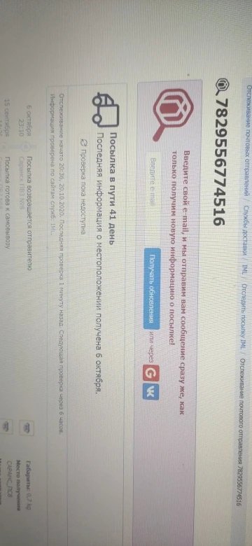 посылка пришла на один из пунктов выдачи iml, где провалялась несколько десятков дней, после чего была отправлена обратно продавцу, проинформировать о приходе посылке никто не потрудился, однако а отслеживании стоит статус " получено", "покупатель подтвердил получение", а если проверять сторонним тренером "посылка возвращается назад отправителю", спор открыть нельзя - якобы покупатель каким то хером подтвердил получение, подтверждение фактов на приложенных скринах.