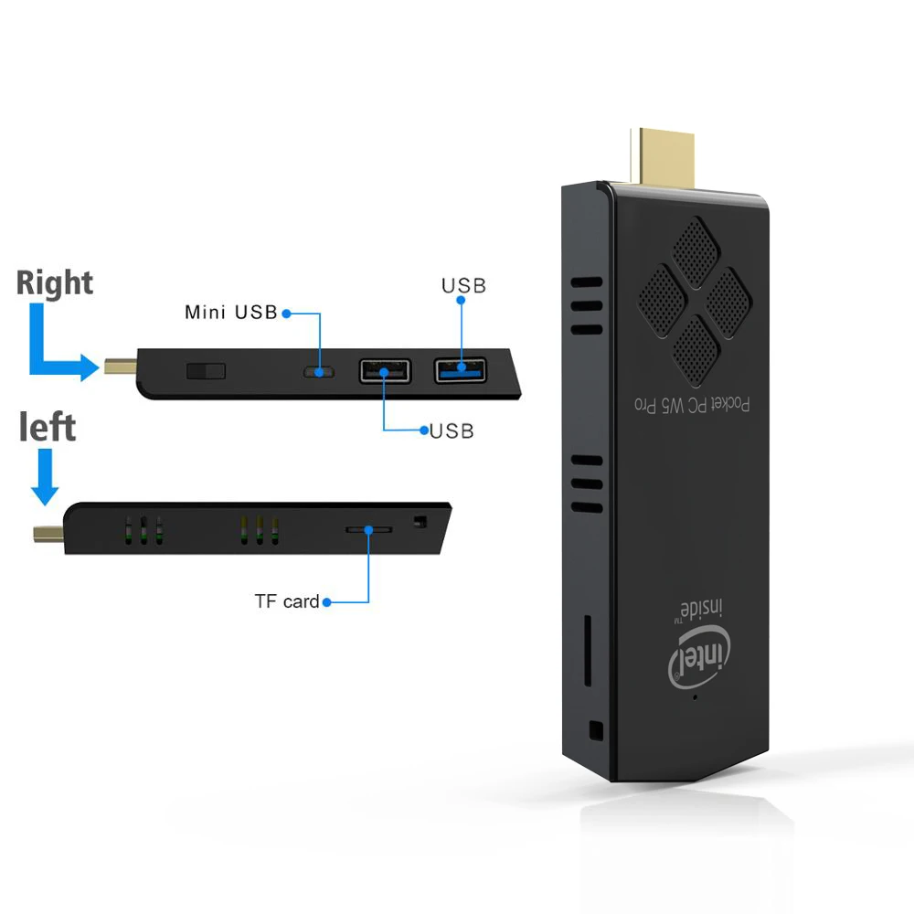 T5 Pro Stick мини компьютер Windows 10 лицензированный 4 Гб ОЗУ 64 Гб ПЗУ Intel Atom Z8350 четырехъядерный Bluetooth 4,2 2,4G/5G WiFi мини ПК