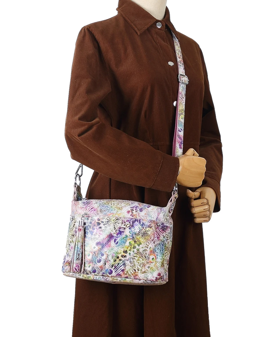 Женская сумка Arliwwi, вместительная сумка из 100% натуральной кожи с павлиньим узором, GL02, красочные сумочки