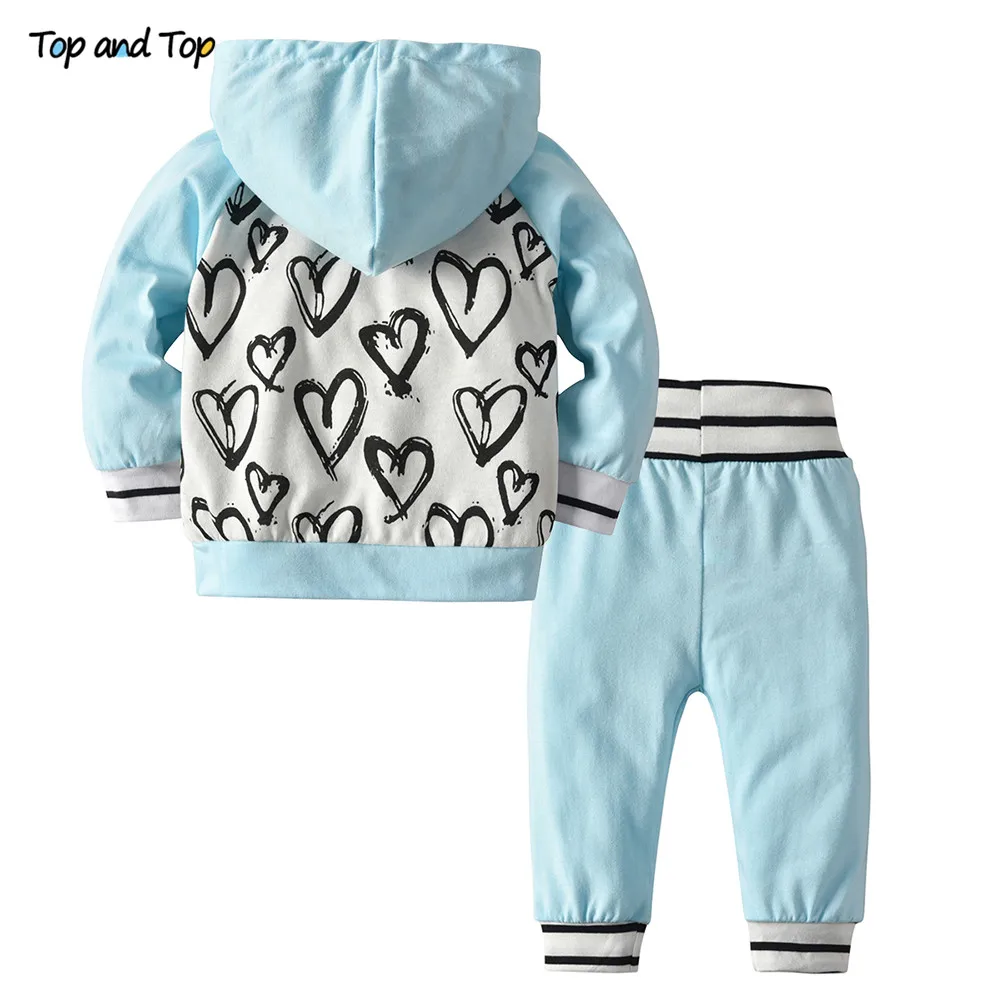 Костюм для девочек из 2 предметов, толстовка с капюшоном и брюки в форме сердца, на весну и осень