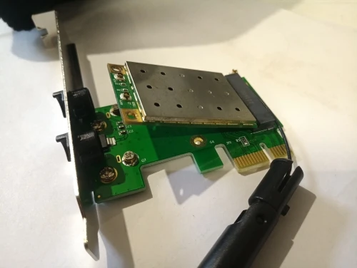 Приобретался в качестве переходника "Mini PCI Express" -> "PCI Express", для подключения "Соболь ПАК-4 Mini PCI Express Half Size" к разъему "PCI Express" обычной системной платы. Адаптер с поставленной задачей справляется. Данный адаптер подходит не только для Wi-Fi контроллеров. Продавца рекомендую.