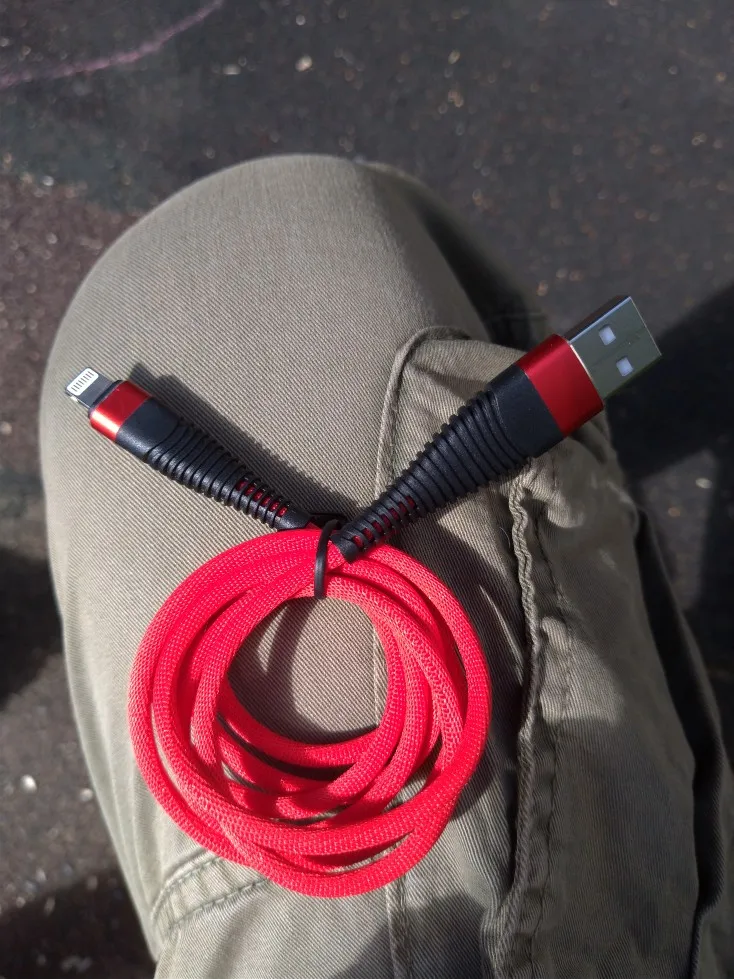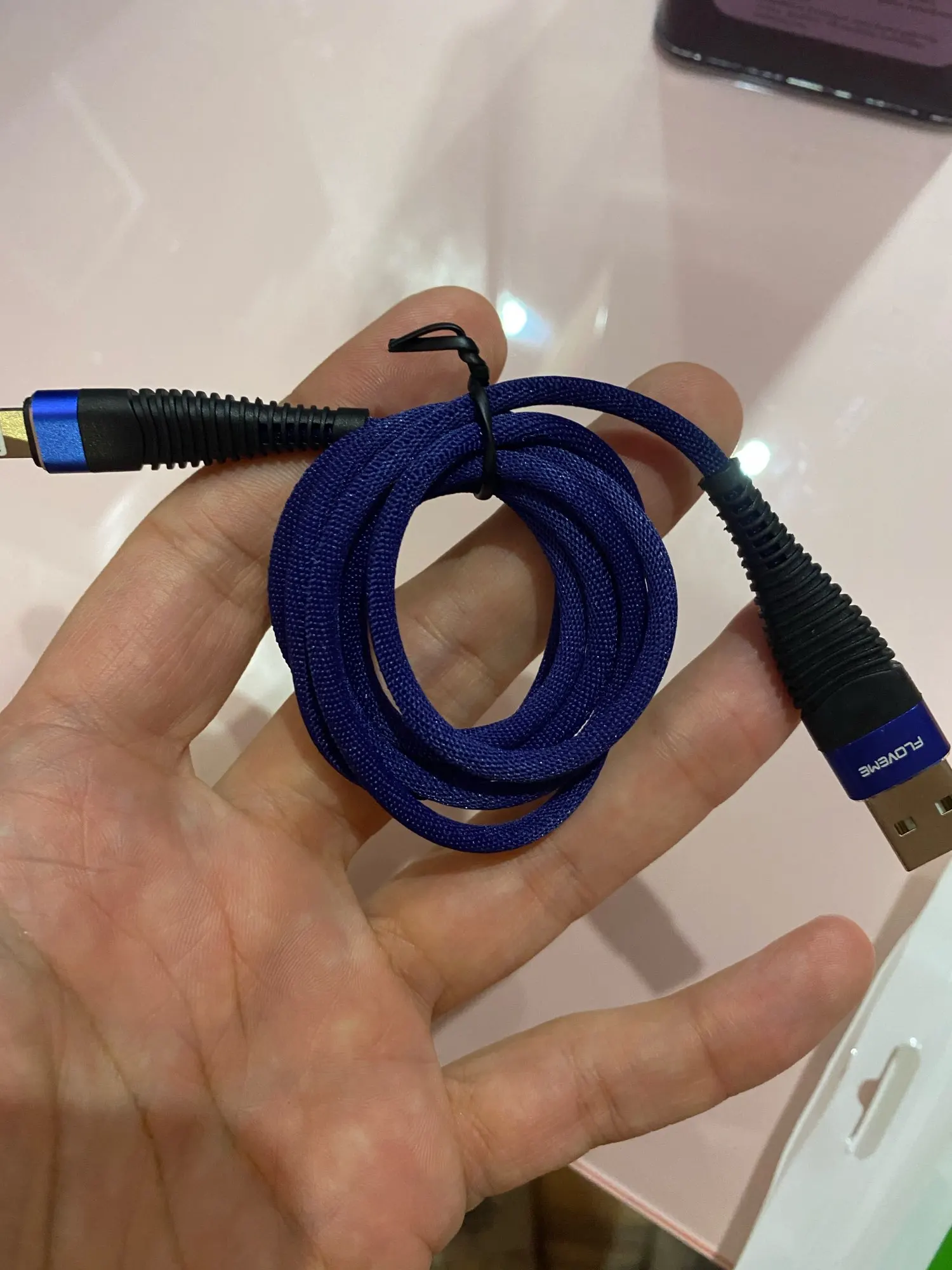 Прислали два шнура синий и красный пока заряжает а дальше видно будет на сколько их хватит, визуально хорошие, шнур жесткий. С продавцом не общалась, посылка пришла за месяц