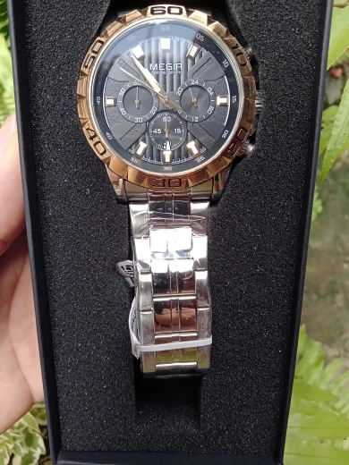 Часы MEGIR Мужские кварцевые с хронографом, деловые водонепроницаемые светящиеся армейские наручные, золотистые, 2087