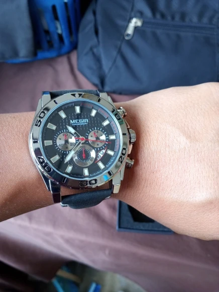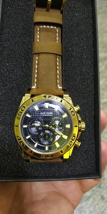 MEGIR Мужские кварцевые часы с кожаным ремешком, водонепроницаемые светящиеся армейские спортивные наручные часы с хронографом, мужские часы 2094 золотого цвета