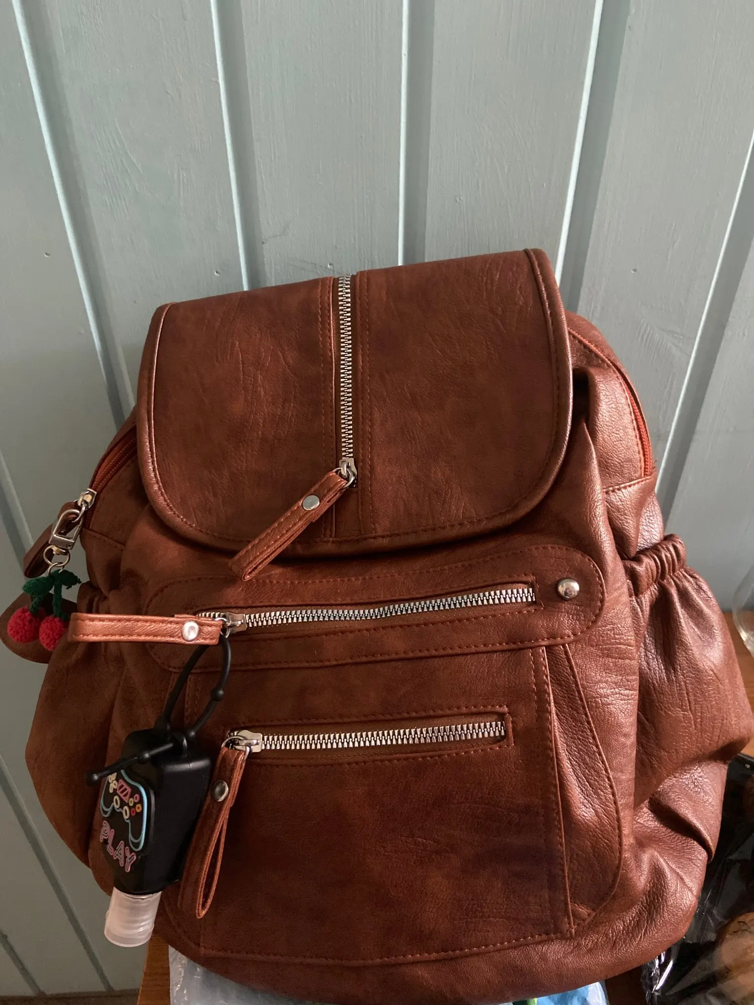 Качество рюкзака отвратительное . Дешёвый , вонючий дерматин . сам коричневый , замки оранжевые. Покупали два года назад у другого продавца , намного дешевле и не отличить от кожи . Цена ему 500 рублей !