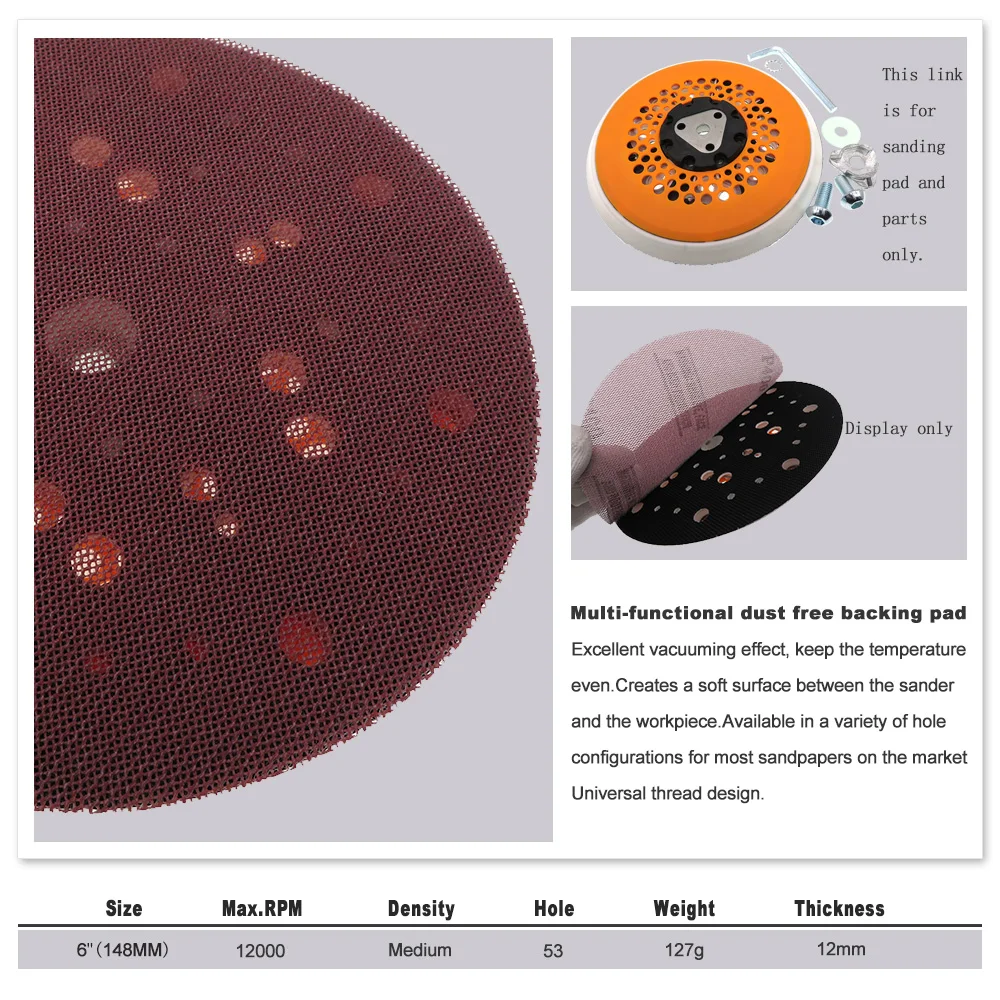 Многофункциональная обратная шлифовальная Подушка, 6 дюймов, 150 мм, беспылевая подложка, 53 отверстия, аксессуары для электроинструментов