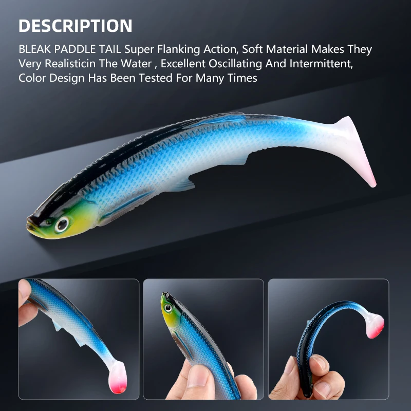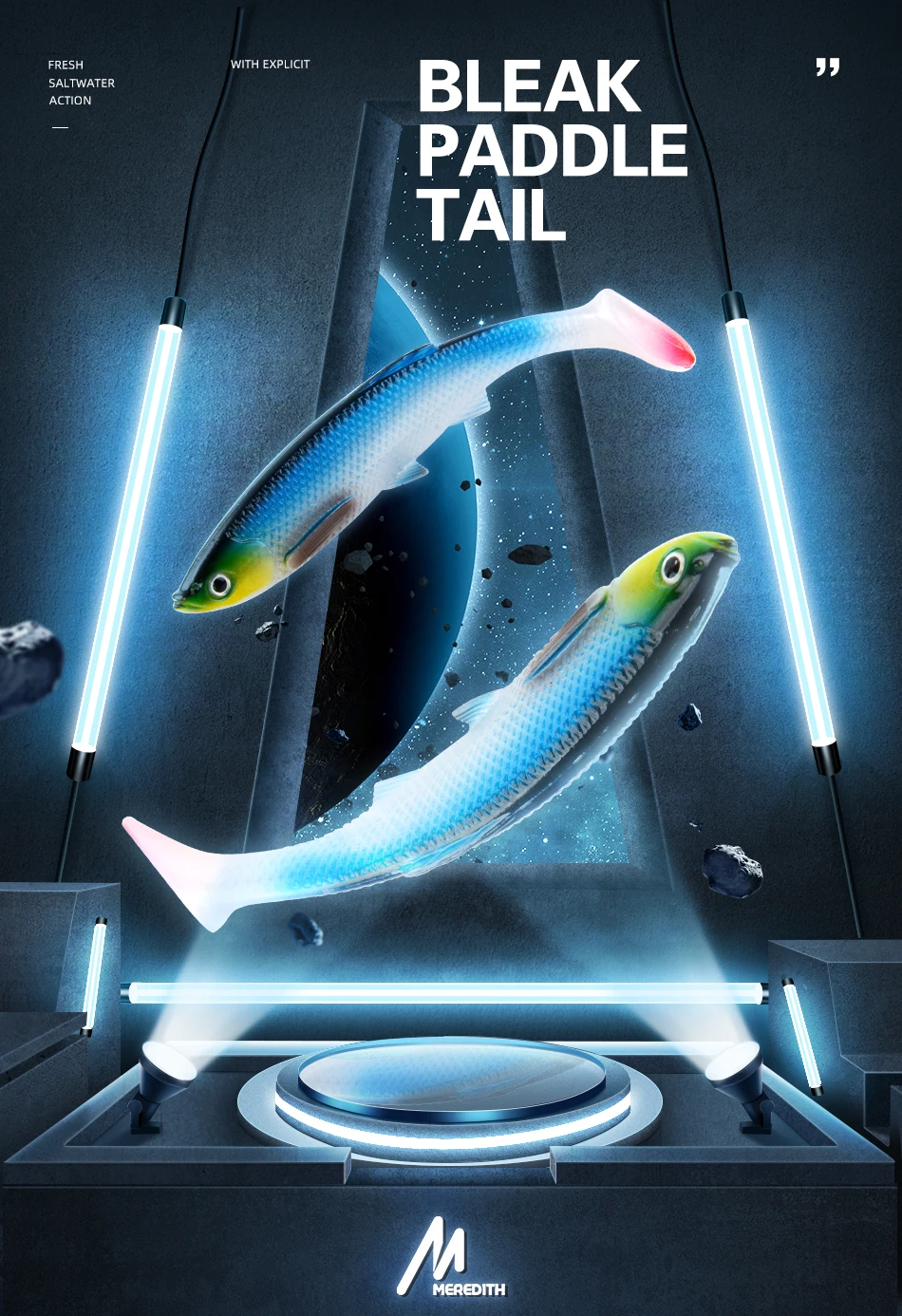 MEREDITH 4,73 "Bleak Paddle Tail 14,5 г 4 шт.120 мм Мягкие рыболовные приманки 3D глаза Хвост искусственная приманка Пластиковые приманки для ловли щуки