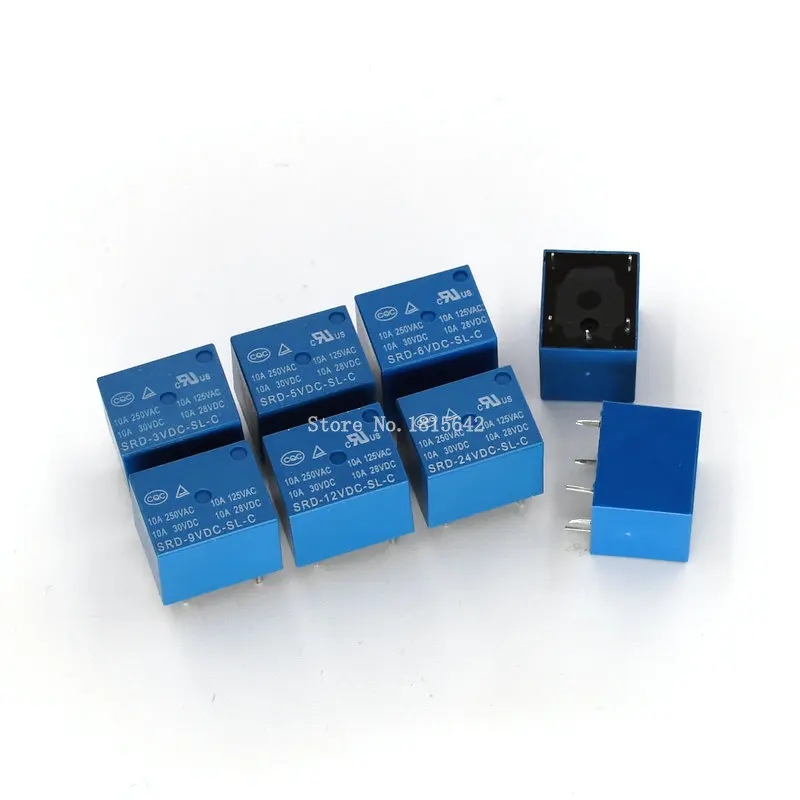 Реле 5 шт., SRD-05VDC-SL-C, SRD-03, 05, 06, 09, 12, 24, 12 В, 5 контактов, 3 в, 5 В, 9 В, 6 В, 24 В, 12 В, 10 А, 250 В переменного тока, 5 контактов
