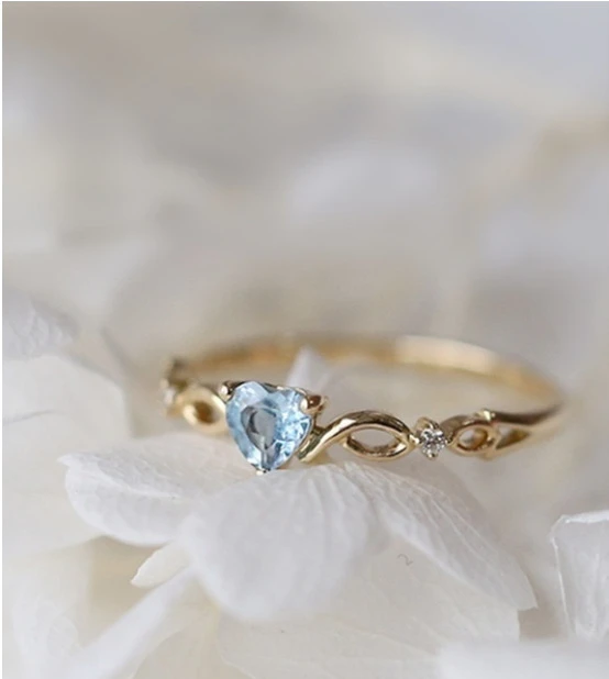 Винтажное Женское Обручальное кольцо с голубым цирконом, квадратным цирконом, с маленьким сердцем, модные ювелирные изделия для помолвки