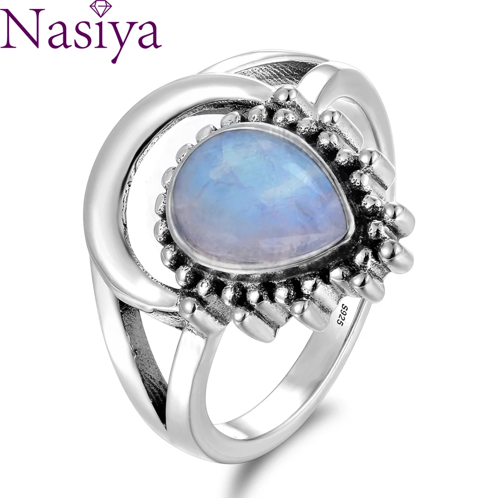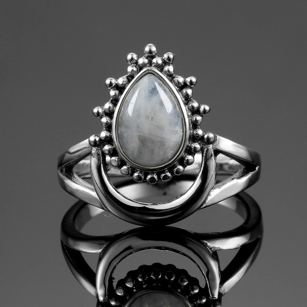 Новый Винтаж 925 Серебряные ювелирные изделия кольца для Для мужчин Для женщин Для мужчин 7x9 мм капли воды настоящие лунные камни Свадебные Юбилей вечерние подарки