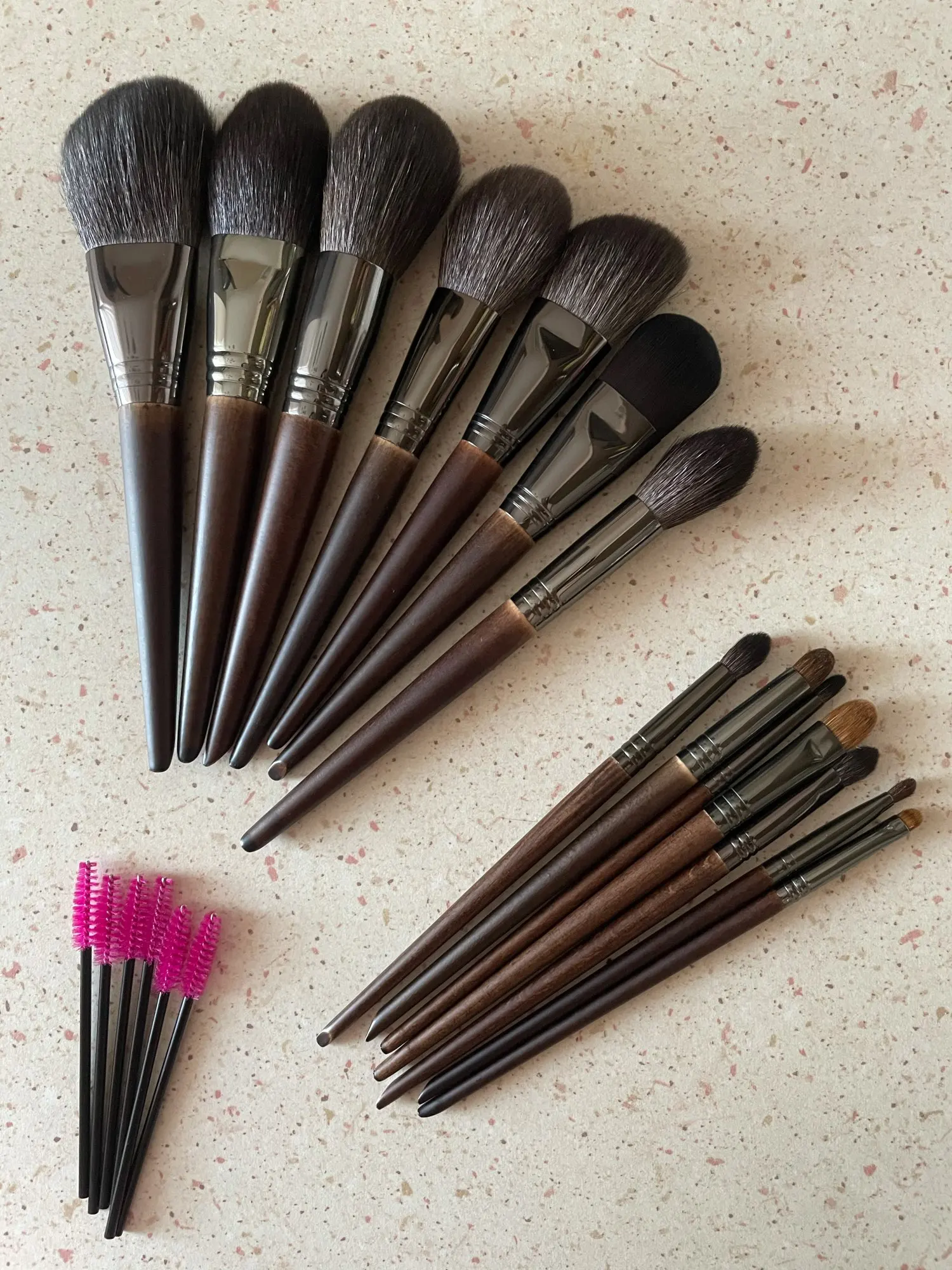 хорошие кисточки по виду ,пока не пробовала ,но общее впечатление отличное ,в подарок положили ещё две щёточки для бровей Спасибо продавцу за быструю доставку!