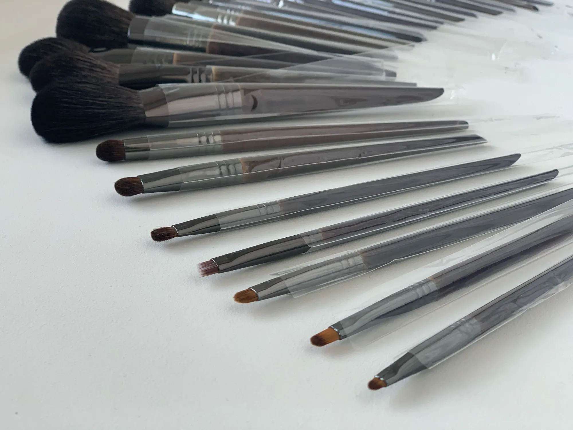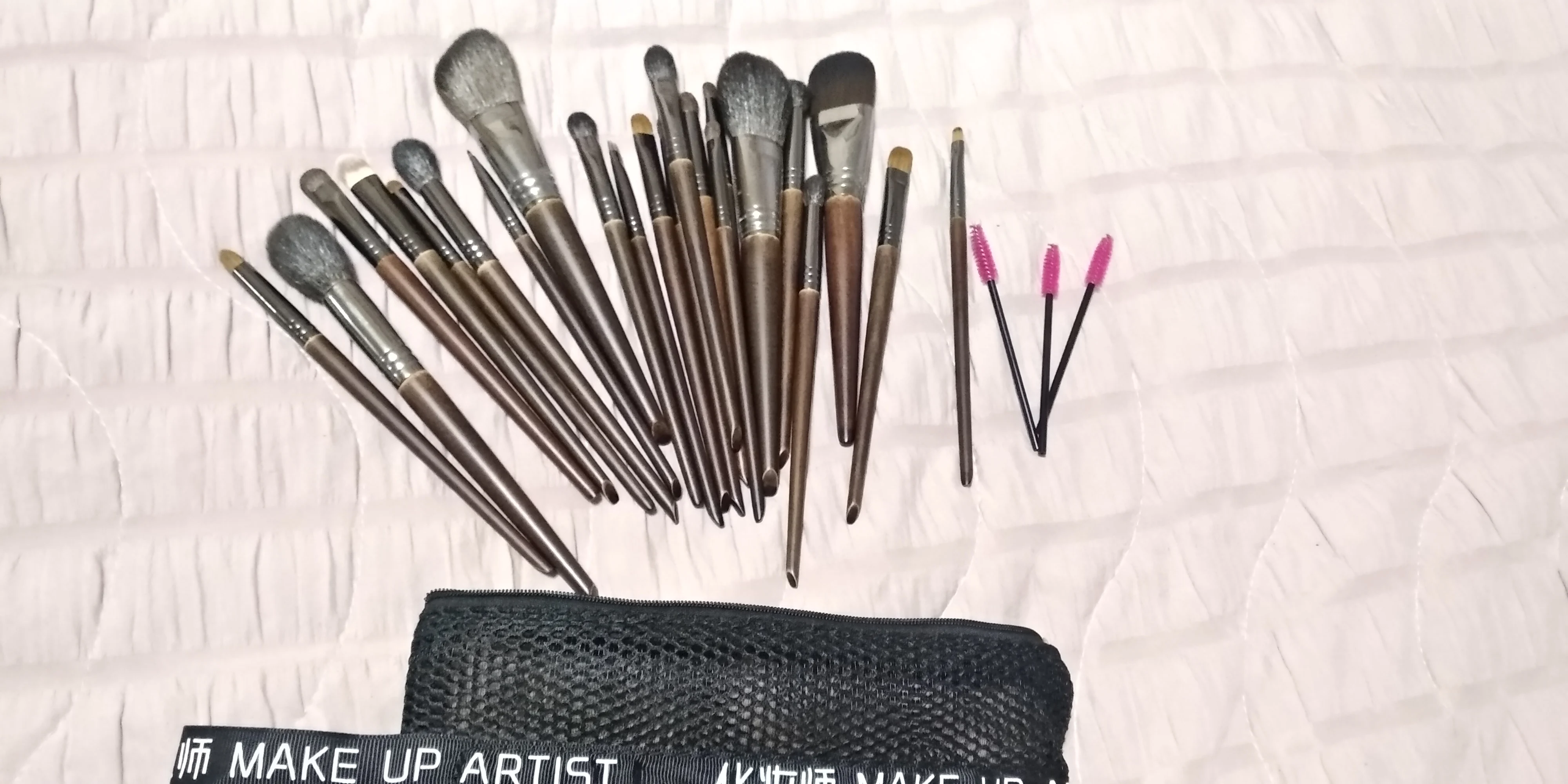 Я заказывала сразу набор из 24шт. На странице продавца есть фото с описанием каждой кисти из чего она выполнена и для чего она предназначена. Качество кистей отличное - волокна очень мягкие, пушистые и не лезут. Ручки гладкие, в руках держать удобно. Также есть металлические наконечники. Даже сам дизайн кистей выглядит привлекательно. Теперь по поводу доставки и упаковки Кисти были упакованы на высшем уровне: каждая кисть находилась в индивидуальном пакетике/мешочке; затем уже все кисти в сетчатой косметичке. Также продавец в подарок положил дополнительные кисточки. Доставка в Украину заняла 2 недели. Кисти шикарные. Очень понравились. Теперь буду заказывать всегда в этом магазине, ведь и цена доступная и качество на высшем уровне. Однозначно рекомендую и магазин и кисти!