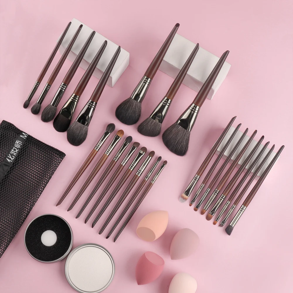 В наборе есть все, что нужно для работы в любой технике мейкапа. Упакованы кисти были отлично, приходят в чехле, каждая кисть лежала в индивидуальном пакете. Большие кисти имеют чехлы. Кисти очень понравились: и внешне очень красивые, и качество отличное, и пользоваться одно удовольствие!!!!! Кисточки удобно держать в руке. Кисти очень легкие. Выполнены ручки из дерева. Ворс кистей щеток невероятно мягкий и густой. С легкостью будет нанесен идеально ровный тон и незаметная тушевка контура.В работе кисточки прекрасны, отлично набирают продукты, максимально отдают, пигменты не втягивают. К коже очень приятные, мягкие. После мытья кисти как новые, ворс не лезет. Красится ими отлично. Отличный набор