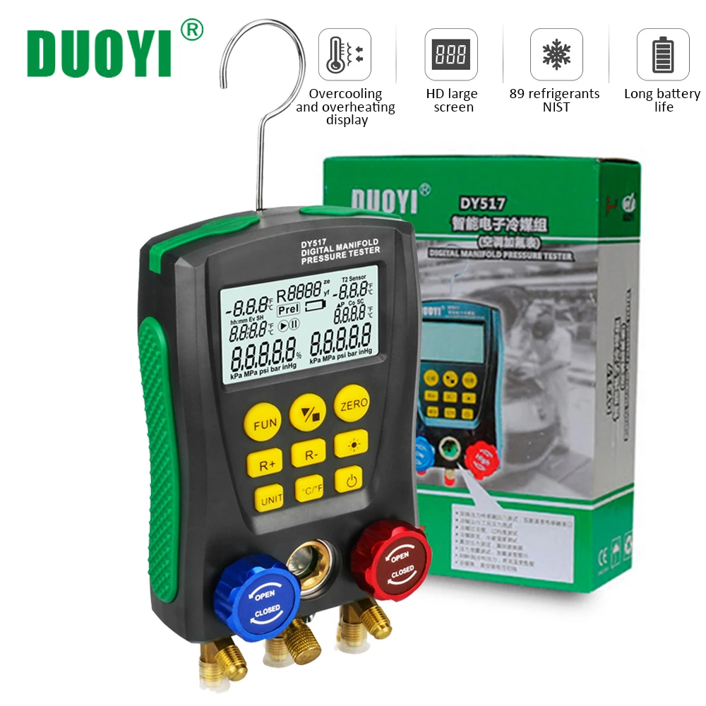 Цифровой измеритель давления DUOYI DY517, компрессионный прибор для холодильника, цифровой тонометр, вакуумный измеритель температуры