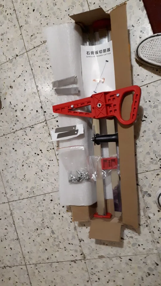 Этот хлам ехал больше месяца и не отслеживался. На 12 мм ГКЛ он не прокатывает, сам паз в рукоятке 11 мм. Ножи расходятся при прорезании 300+ мм и не режут картон. Если резать разные размеры, то надо переставлять ножи, на каждом 3 барашка. В общем время никак не экономит, чисто поиграться и то на ГКЛ 9мм.