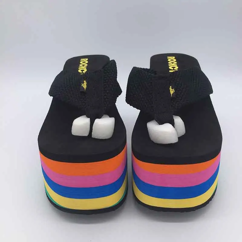 Женские пляжные шлепанцы, радужные сандалии на очень высоком каблуке и толстой платформе, сланцы, 2019