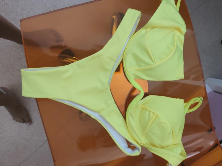 Верх очень маленький, я рекомендую вам попросить еще один ваш нормальный размер. Проблема в том, что если у вас тонкая спина и ваша грудь большая, трудно отрегулировать бикини.