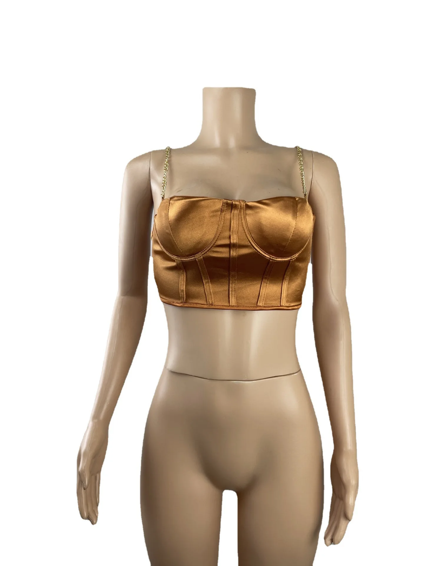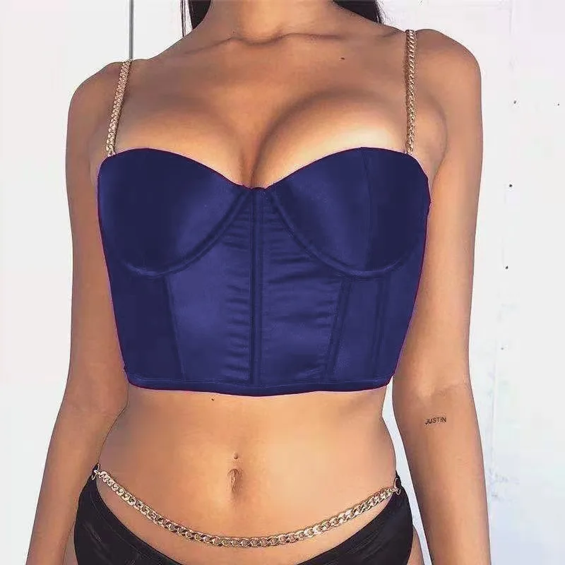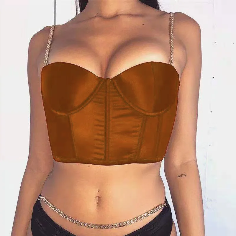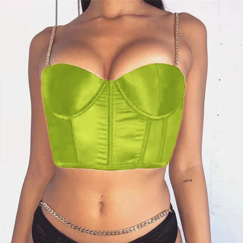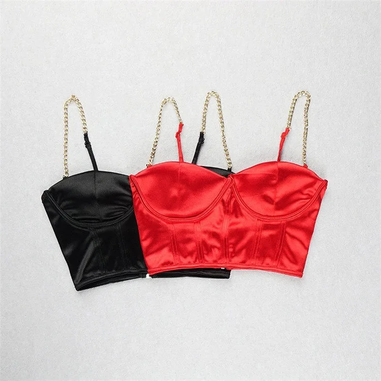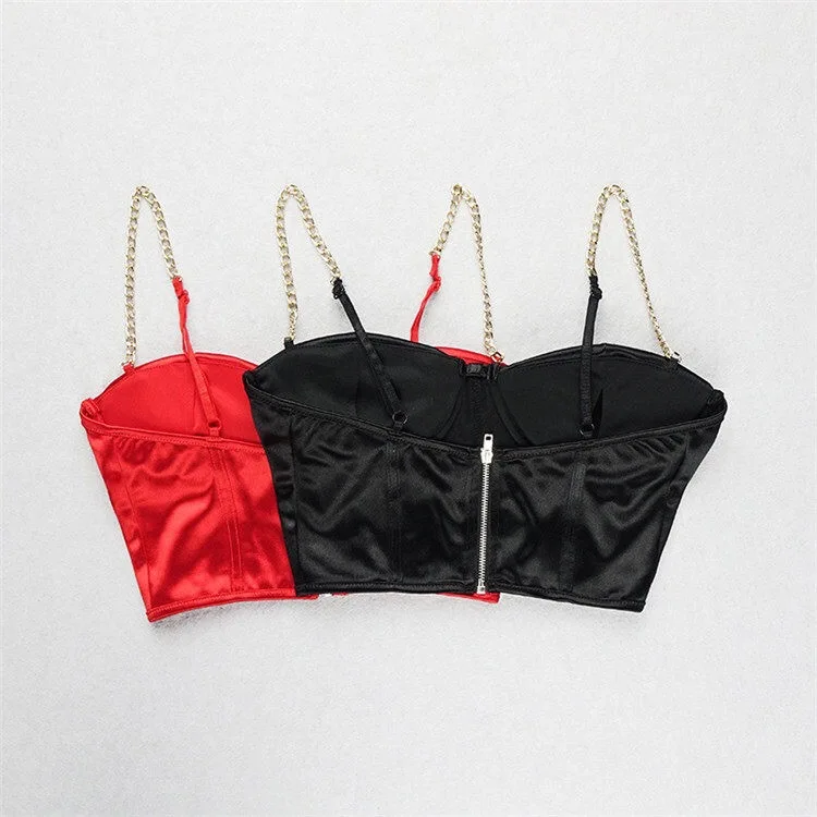 Женский атласный укороченный топ Cryptographic, без рукавов, с цепочкой, с открытой спиной, без бретелек
