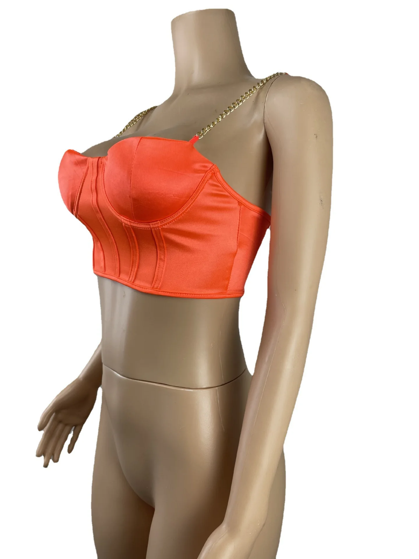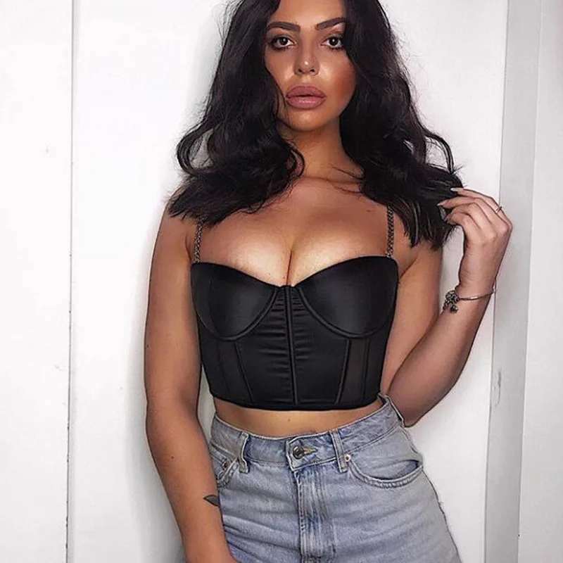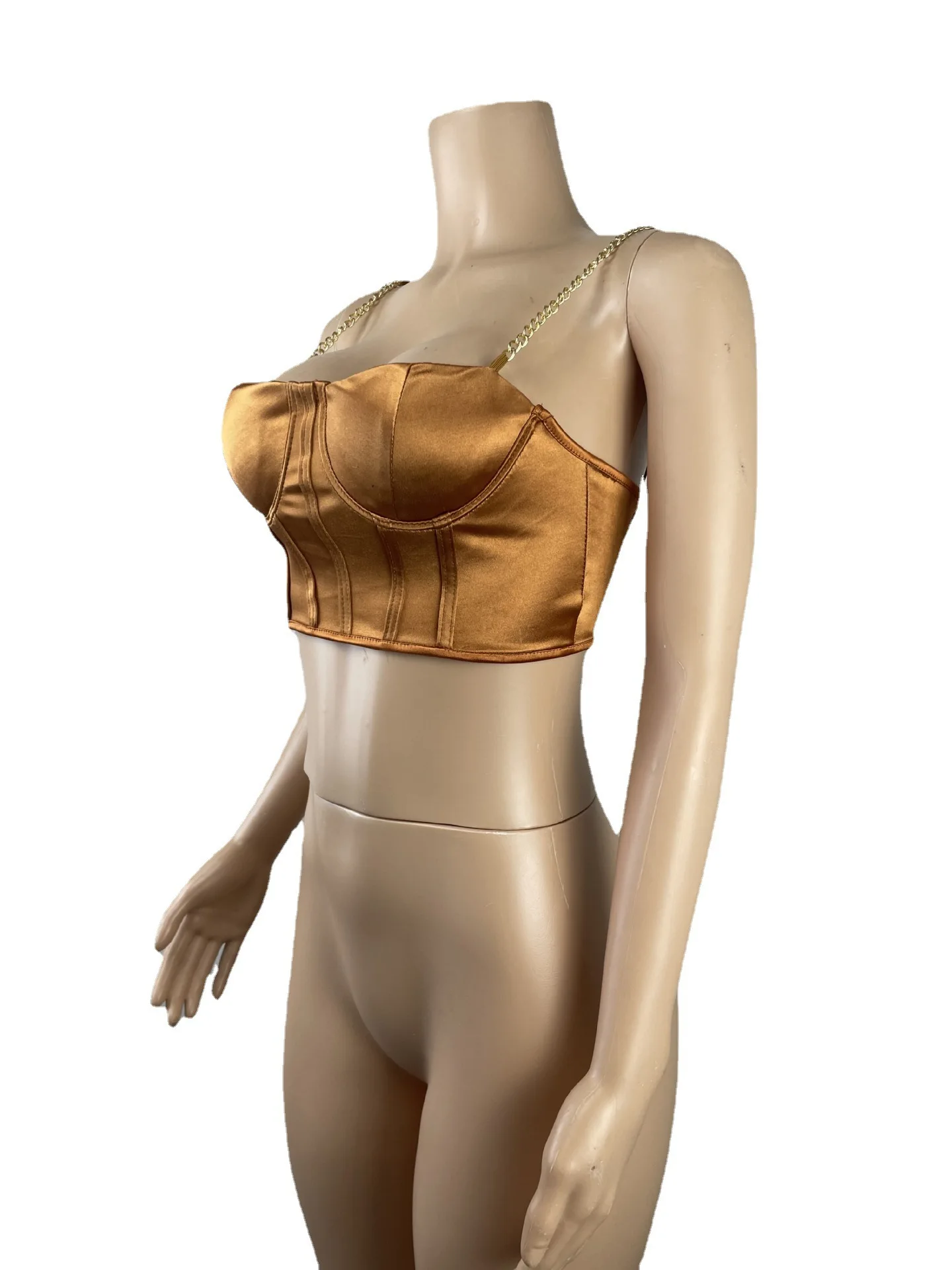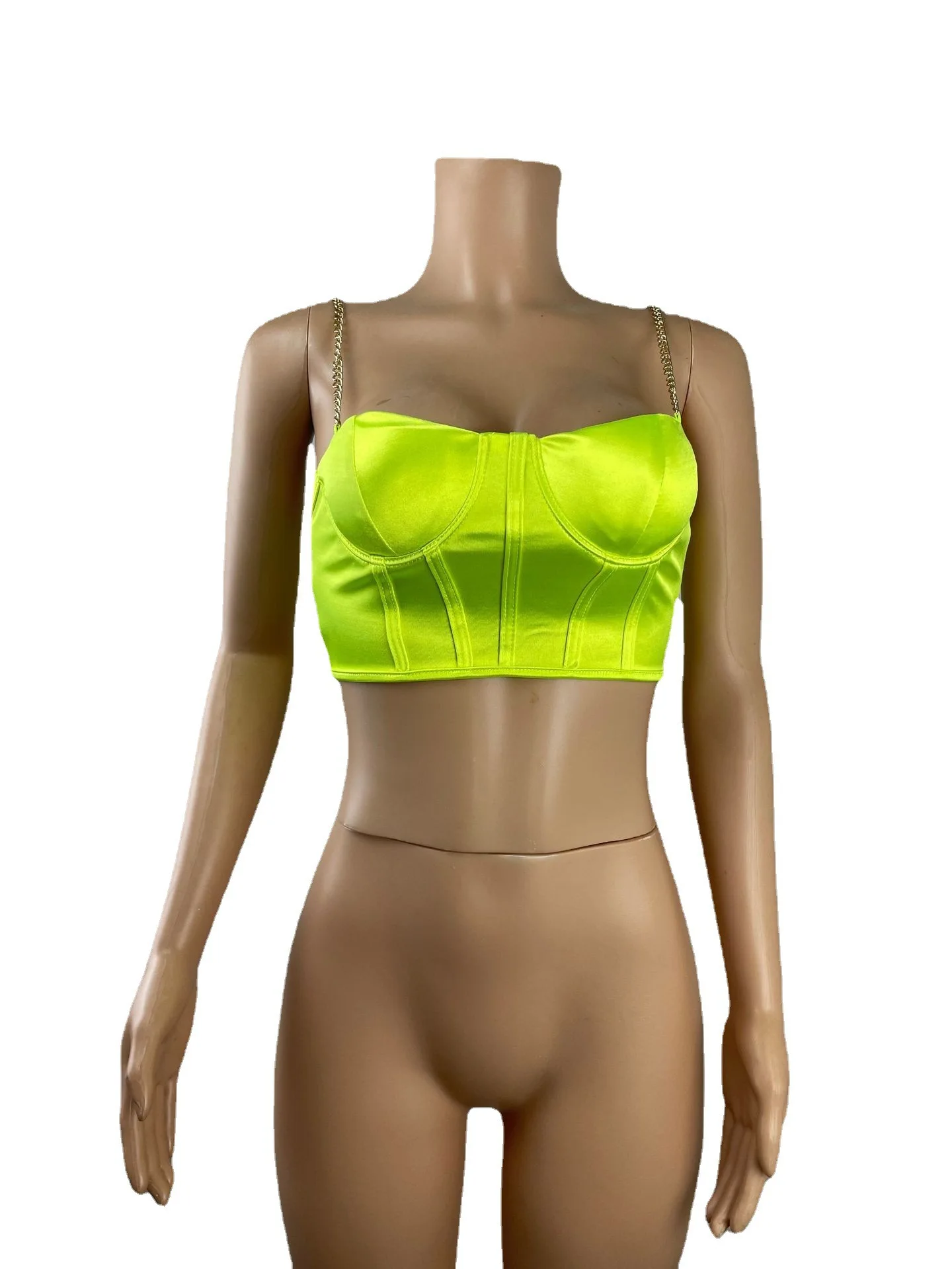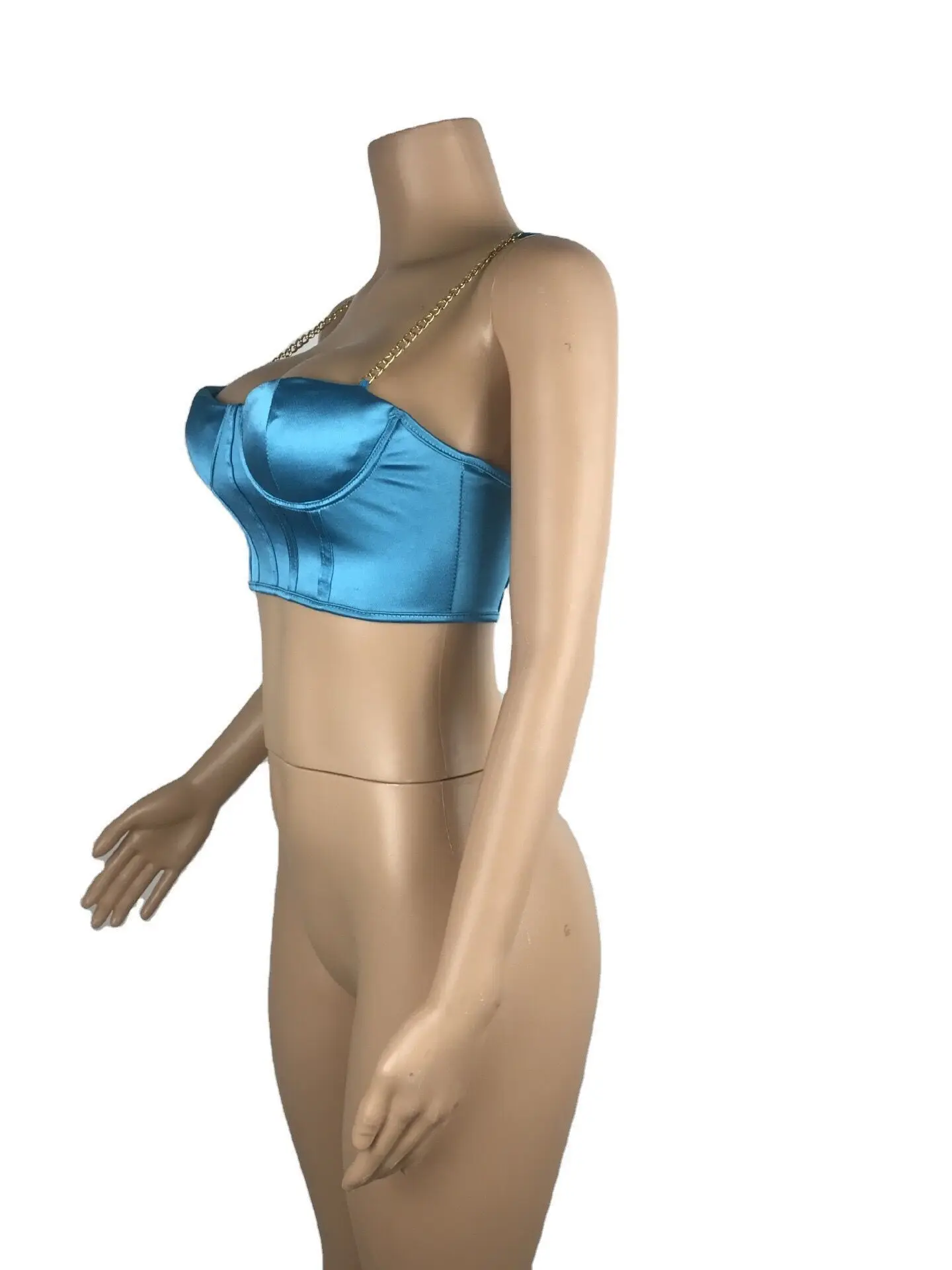 Женский атласный укороченный топ Cryptographic, без рукавов, с цепочкой, с открытой спиной, без бретелек