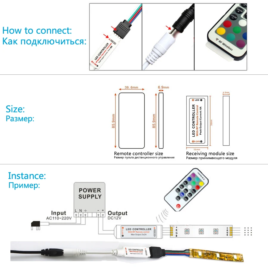 Светодиодный пульт дистанционного управления Micro-size RGB, беспроводной пульт дистанционного управления с 4-контактным разъемом для 12A RGB, светодиодный ленточный светильник ing 5050, светильник