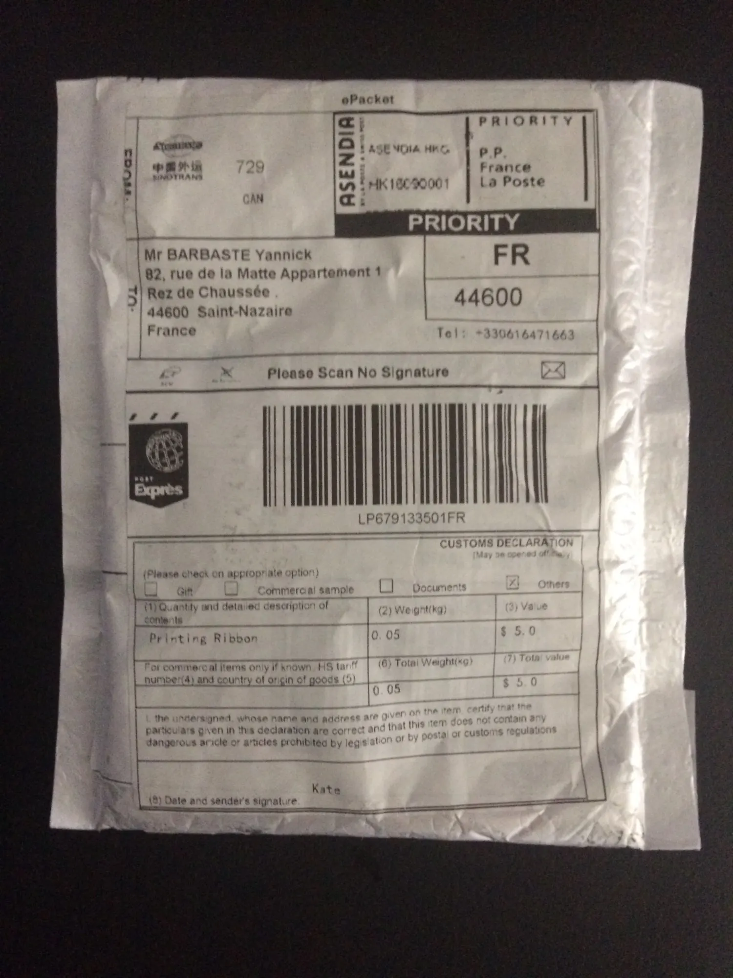 Страна: FR Color: White Plastic Tape Доставка: Standard Shipping 25.05.2021