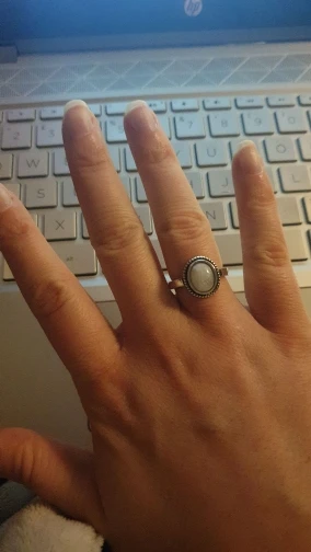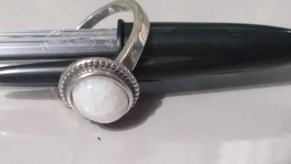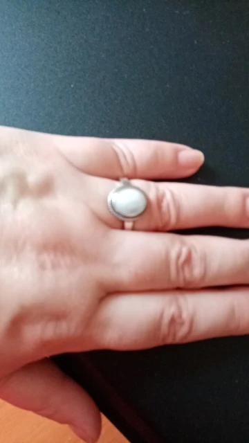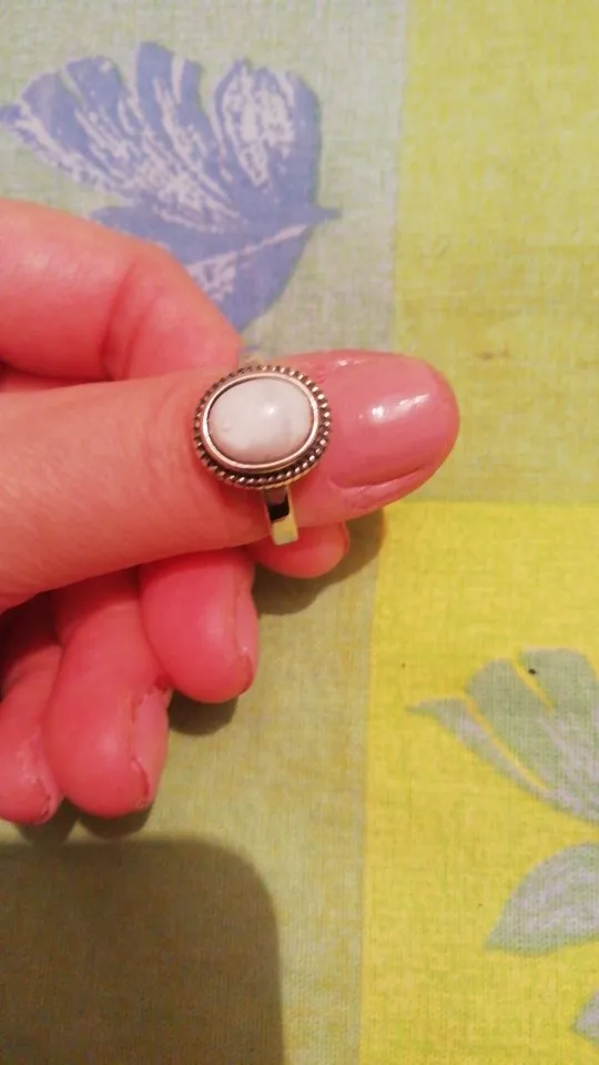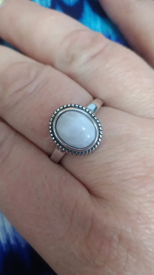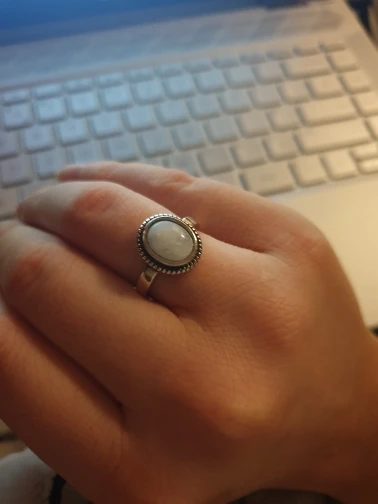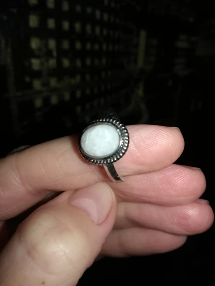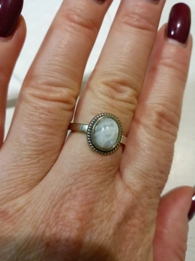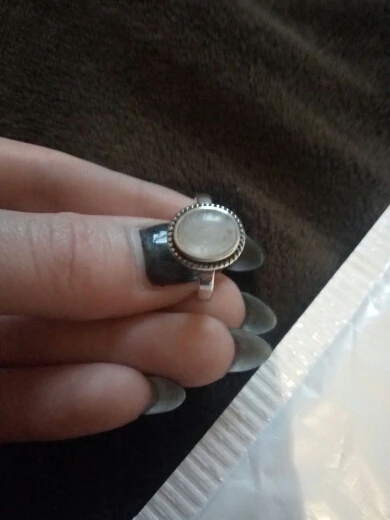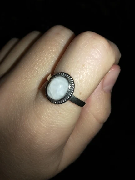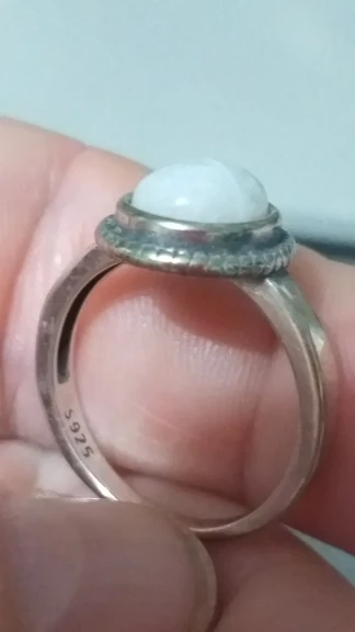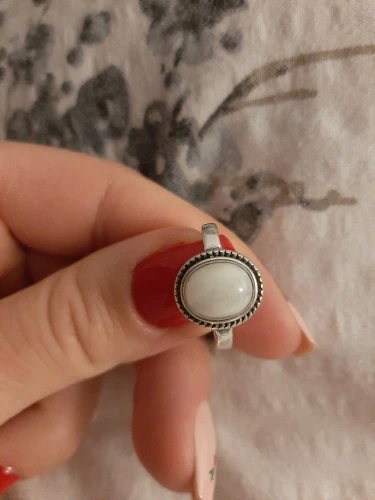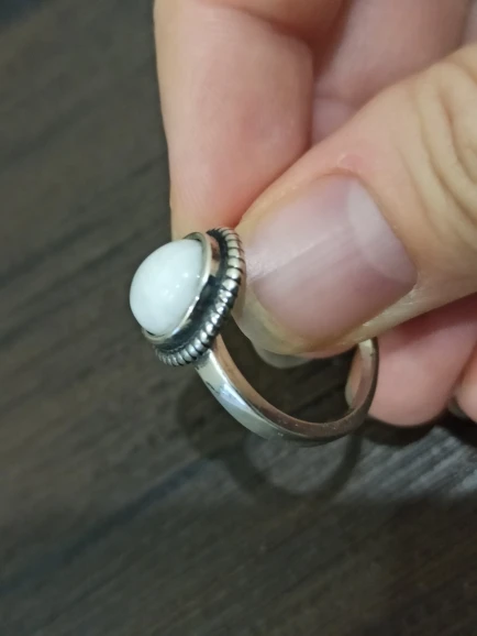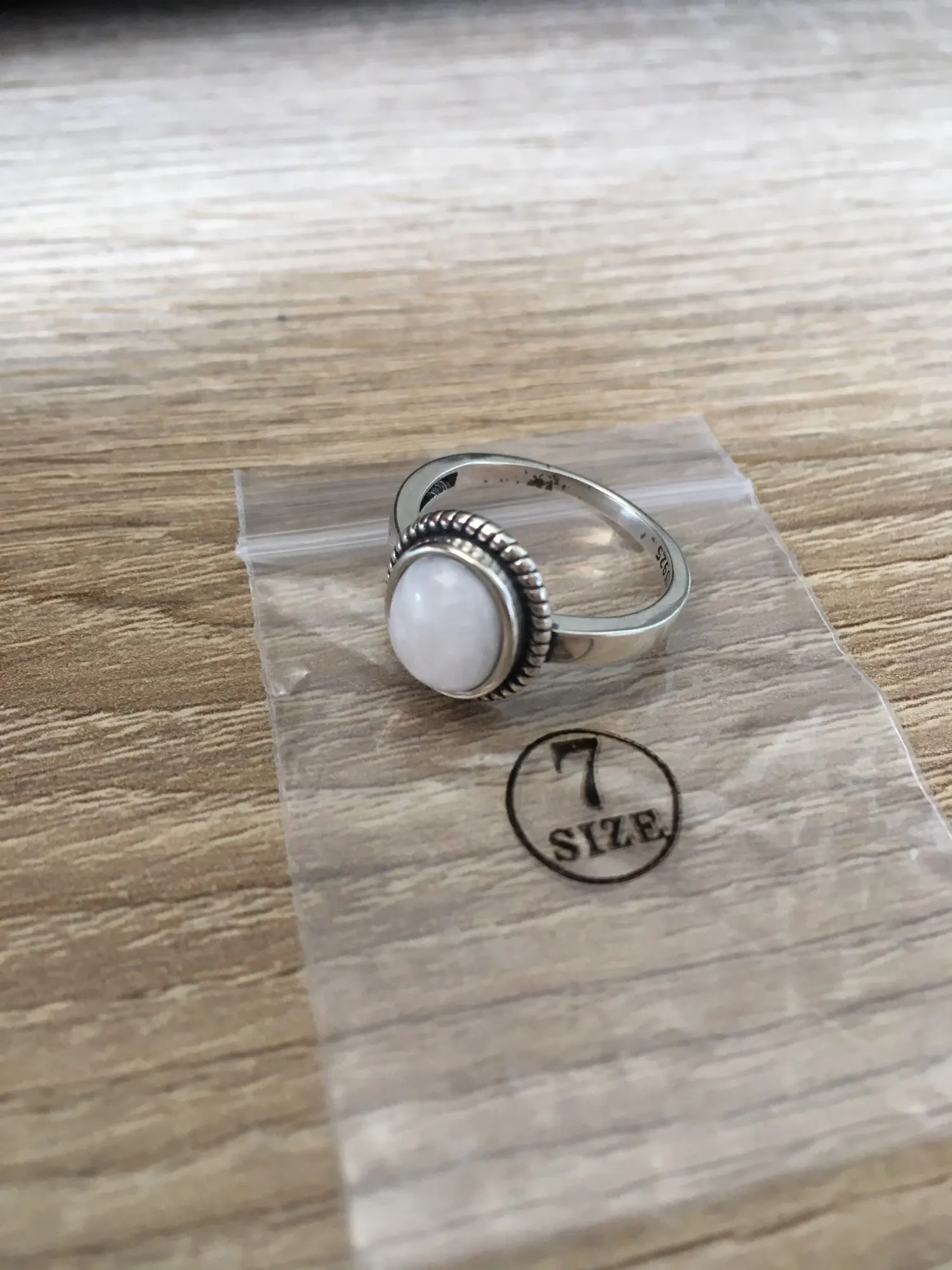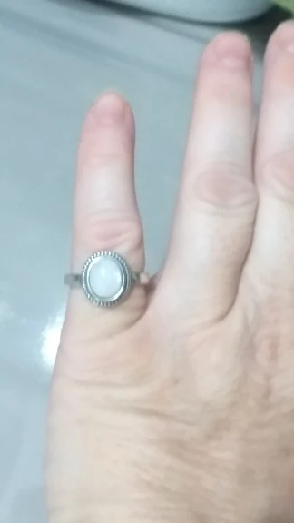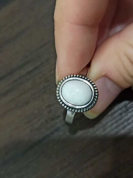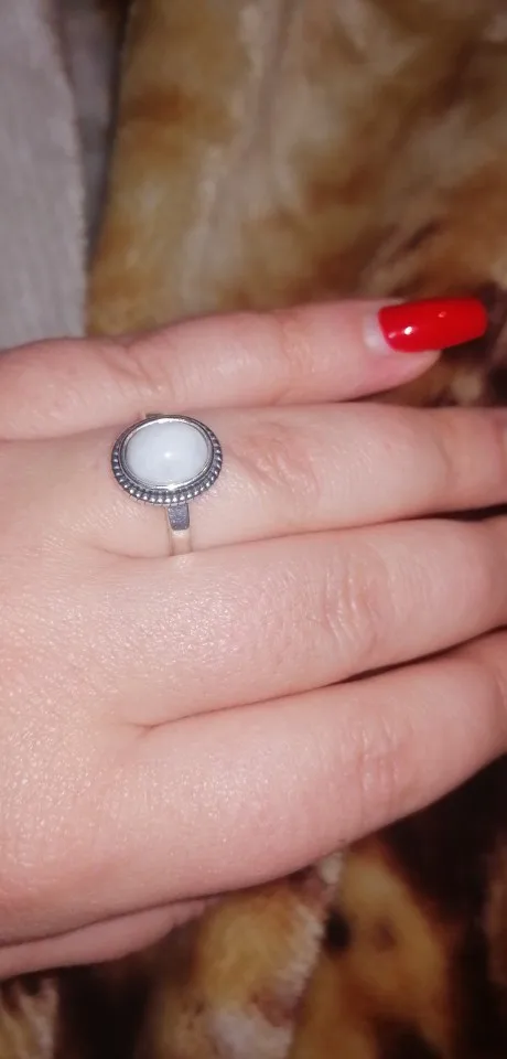Доставка за 2 недели. Камень белый, непрозрачный, с какими-то включениями, надеялась, что будет красивее. Кольцо сделано аккуратно, проба 925 стоит. Размер 7 соответствует 17.