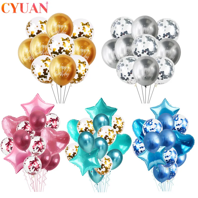 Латексные шары в форме сердца, звезды, воздушный шар "Конфетти", блестящие, металлические, с жемчугом, металлические, хромированные, для дня рождения, свадебные украшения