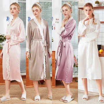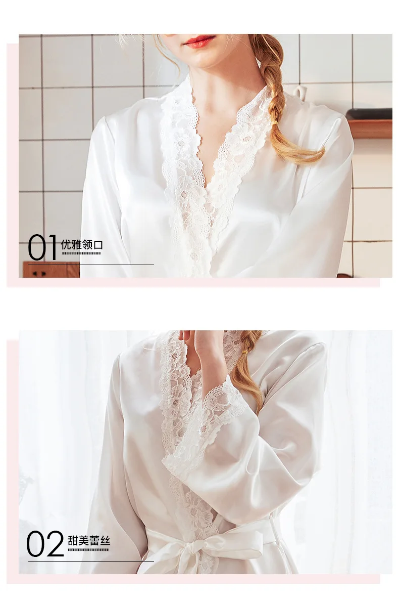 Женское шелковое платье-кимоно Daeyard, длинное атласное платье для невесты и подружки невесты, пикантная одежда для сна с кружевной отделкой, весна-лето